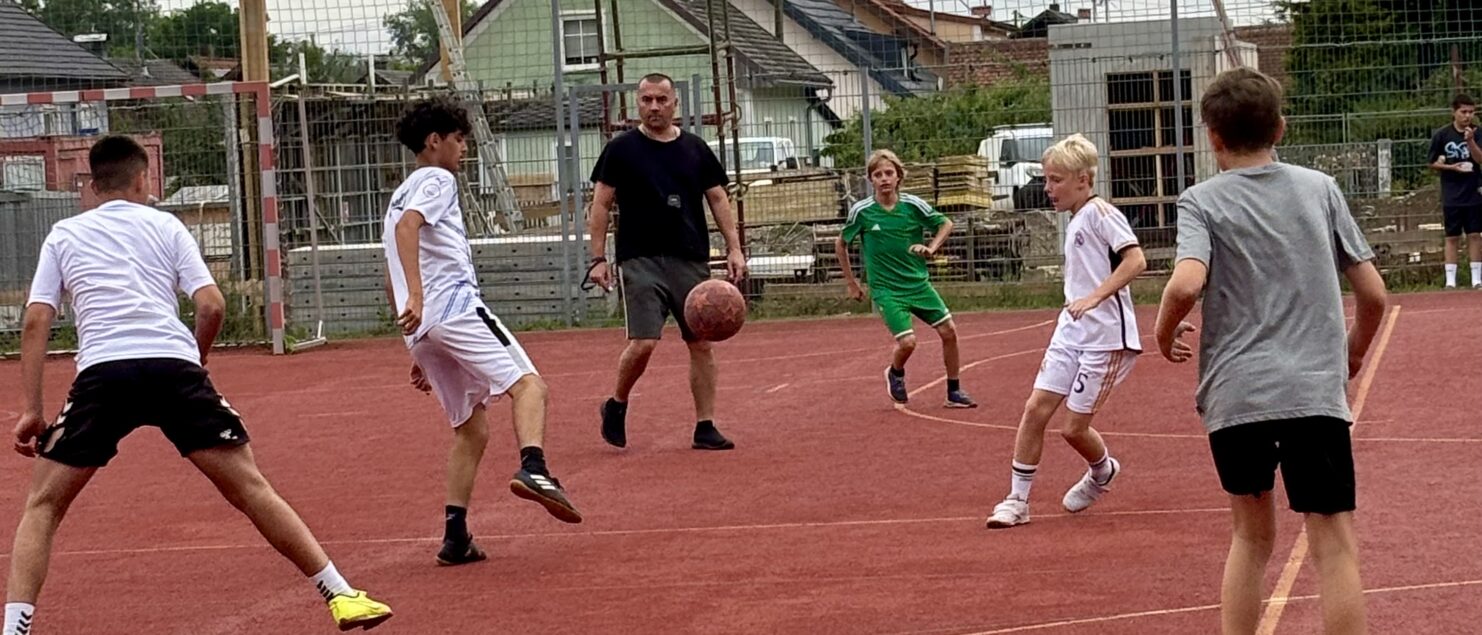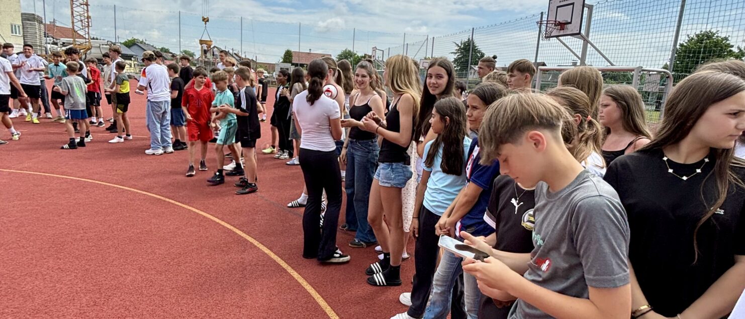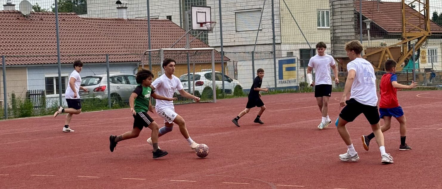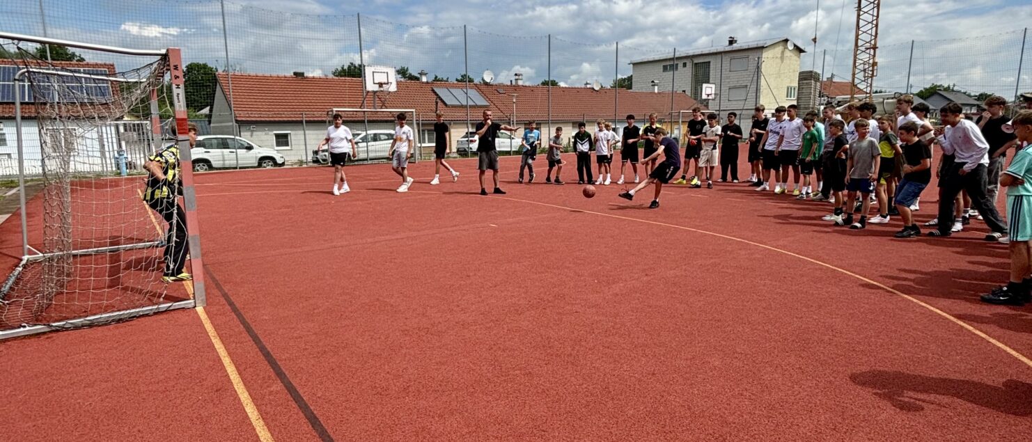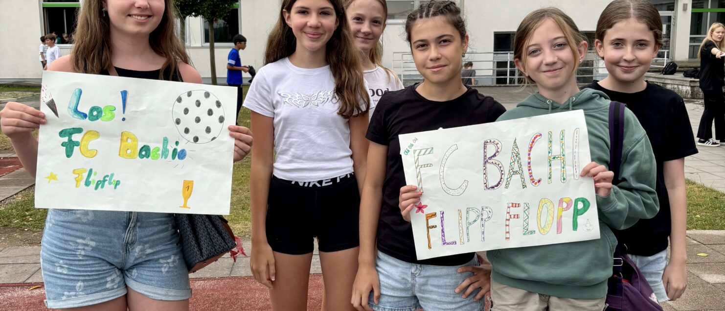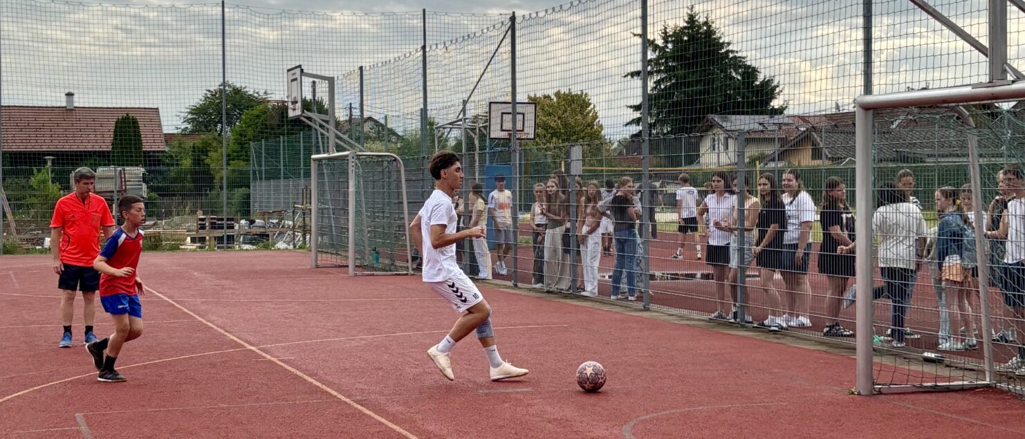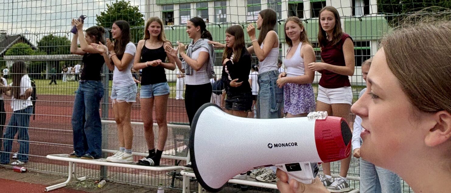 Zehn Teams traten bei der Fußball-Gymmeisterschaft am 27. Juni gegeneinander an. Spannende und faire Spiele, selbst gemachte Getränke und eine gute Stimmung bei den Zuschauerinnen und Zuschauern sorgten für einen abwechslungsreichen Fußballvormittag.
