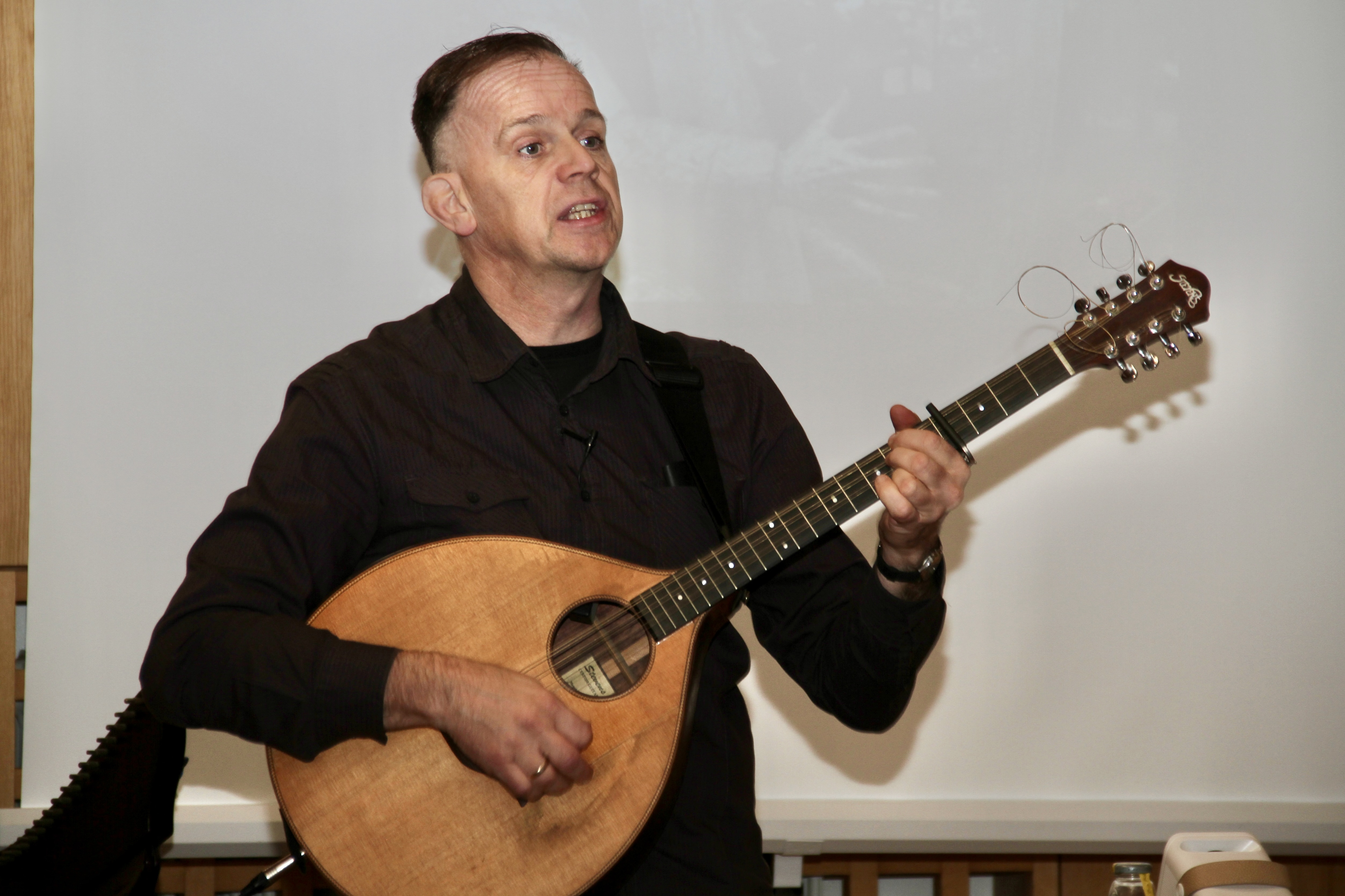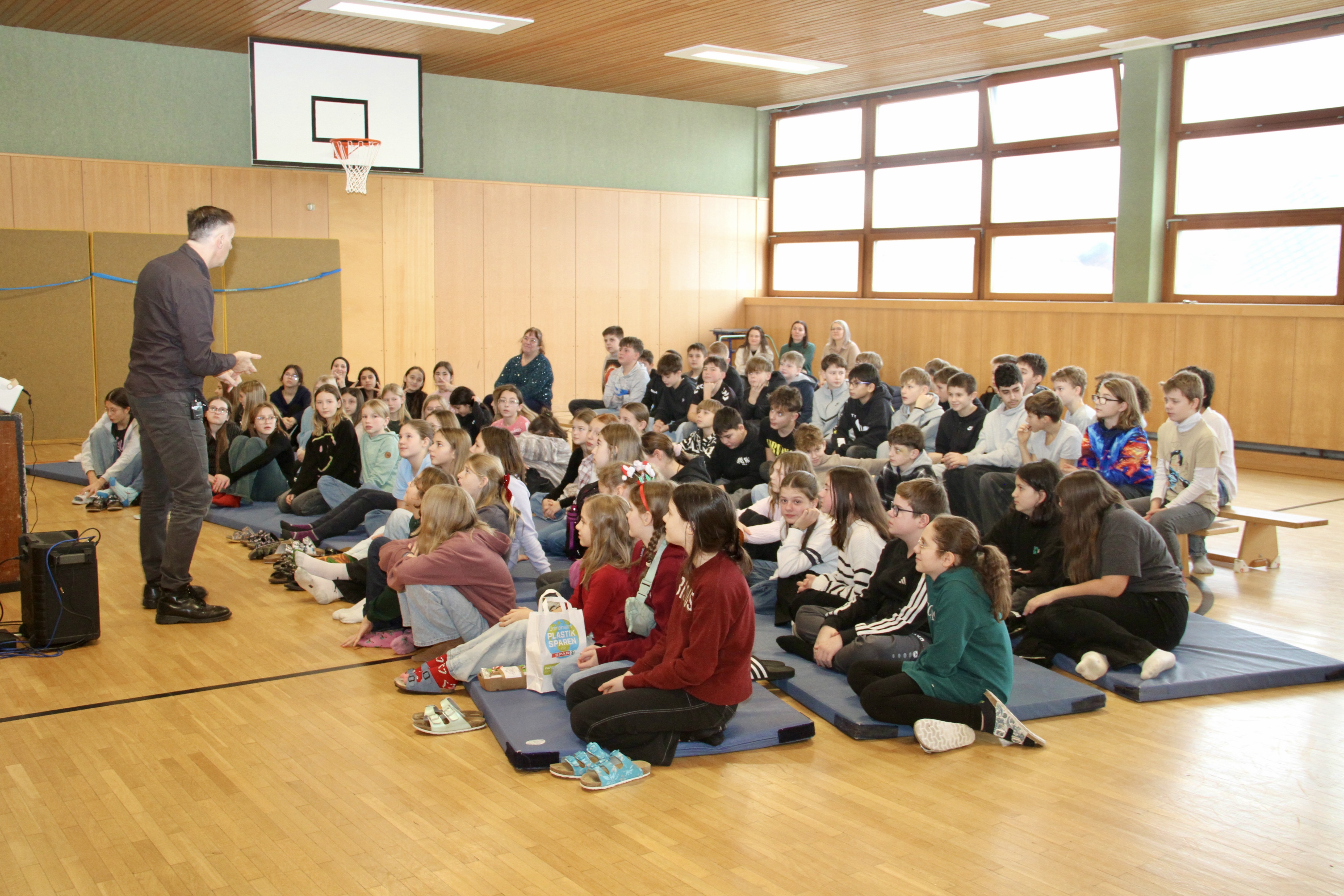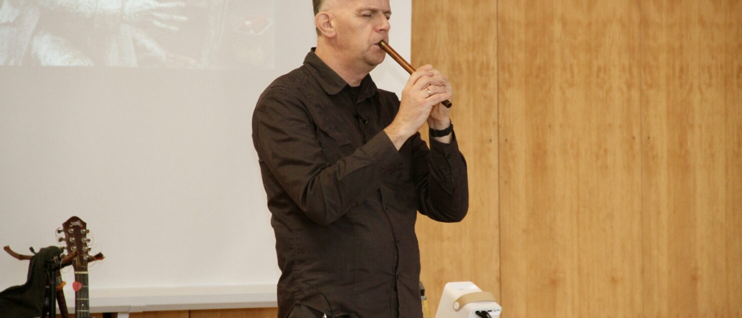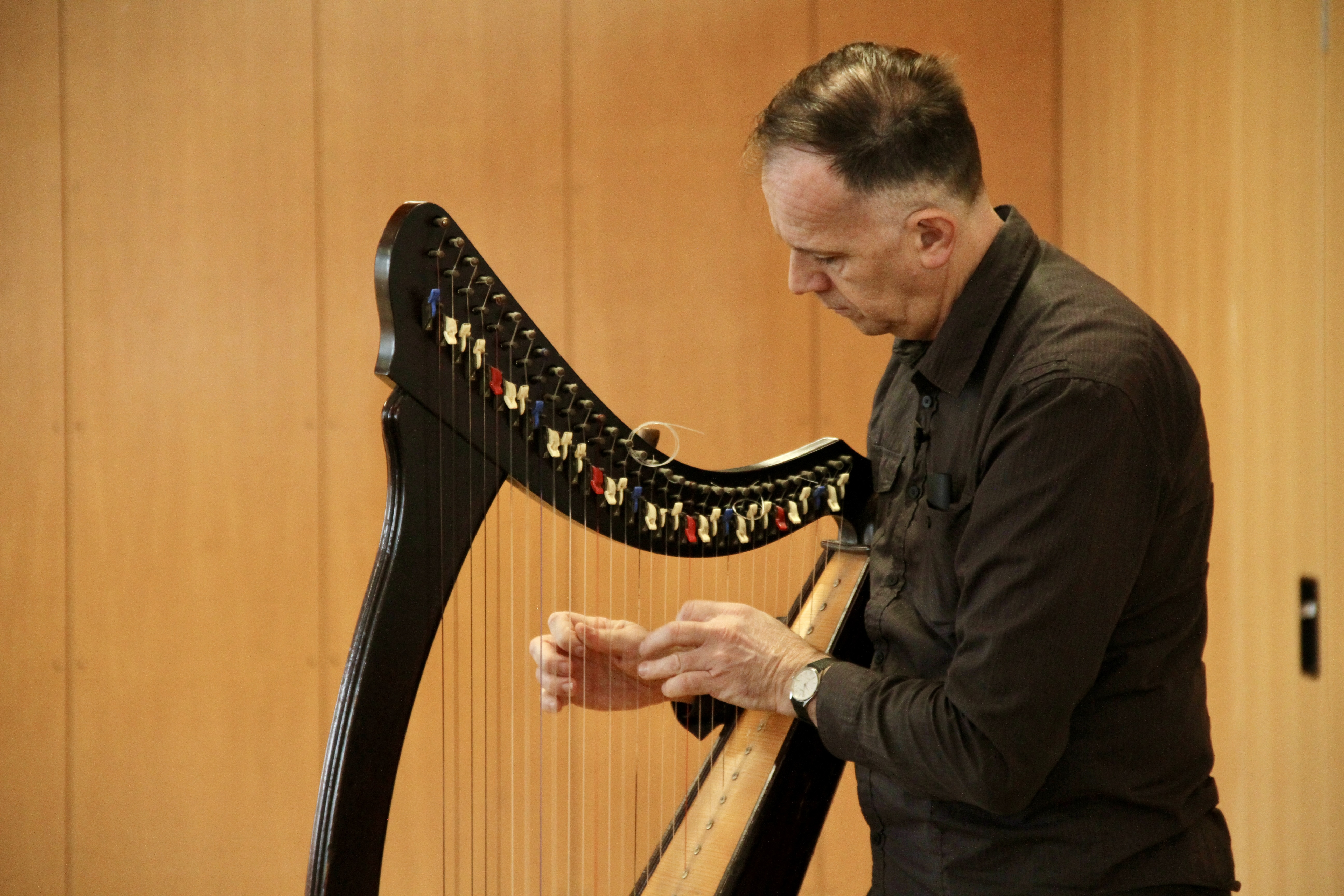 Die Schülerinnen und Schüler, die mit sichtlicher und spürbarer Freude dabei waren, bekamen irische und schottische Weihnachtslieder und weihnachtliche Musik zu hören. Tom Hake spielte Harfe, Dudelsack und irische Bouzouki – und eine Flöte, die er als Junge zu Weihnachten geschenkt bekommen hatte und die der Auslöser dafür war, dass er Musiker wurde. Darüber hinaus erzählte er von weihnachtlichen Bräuchen und Traditionen im ehemals keltischen Kulturbereich.