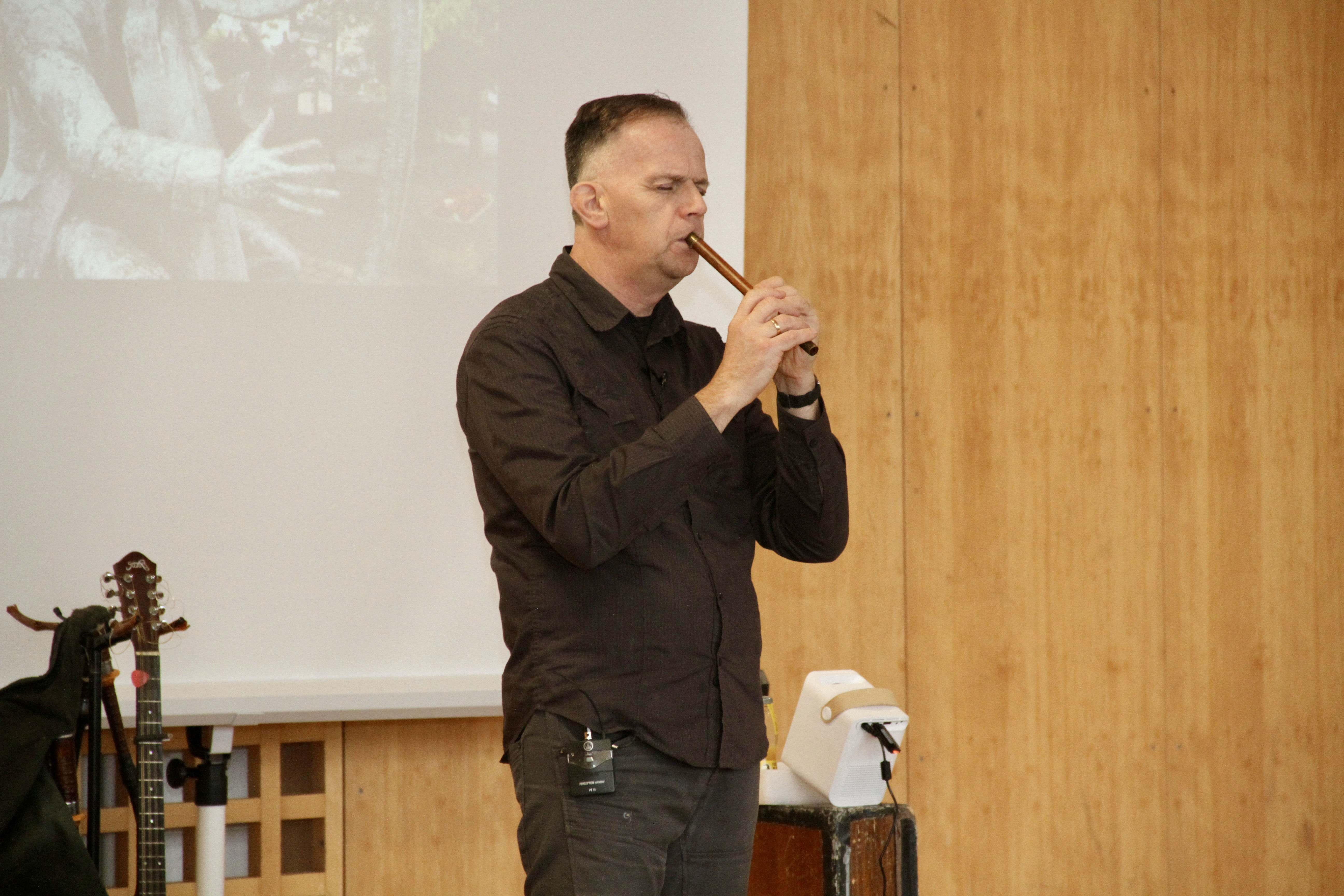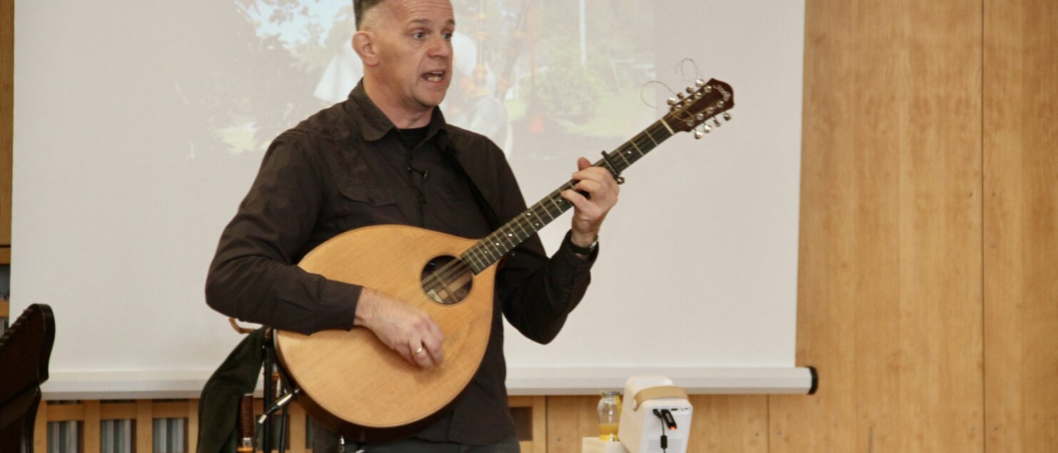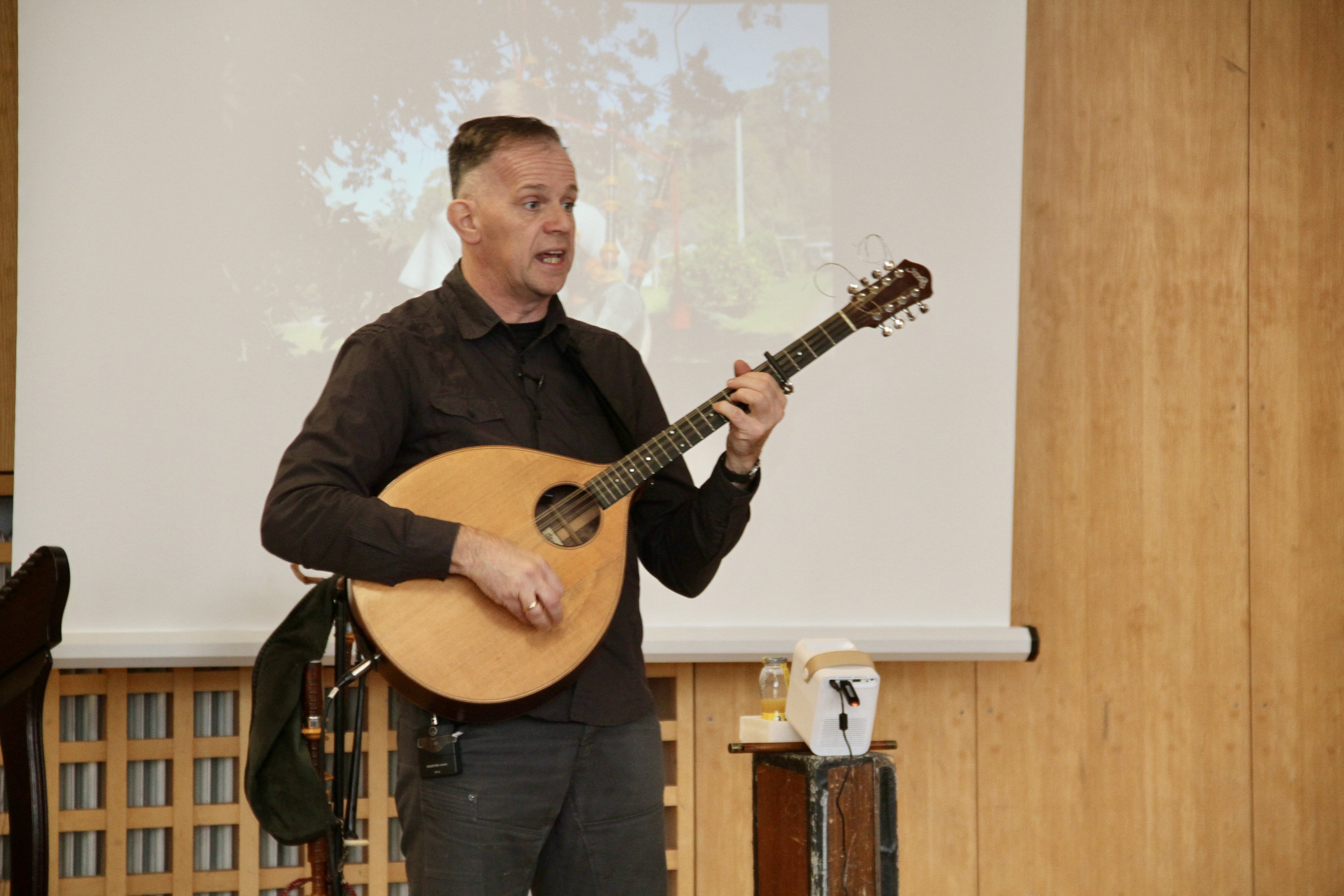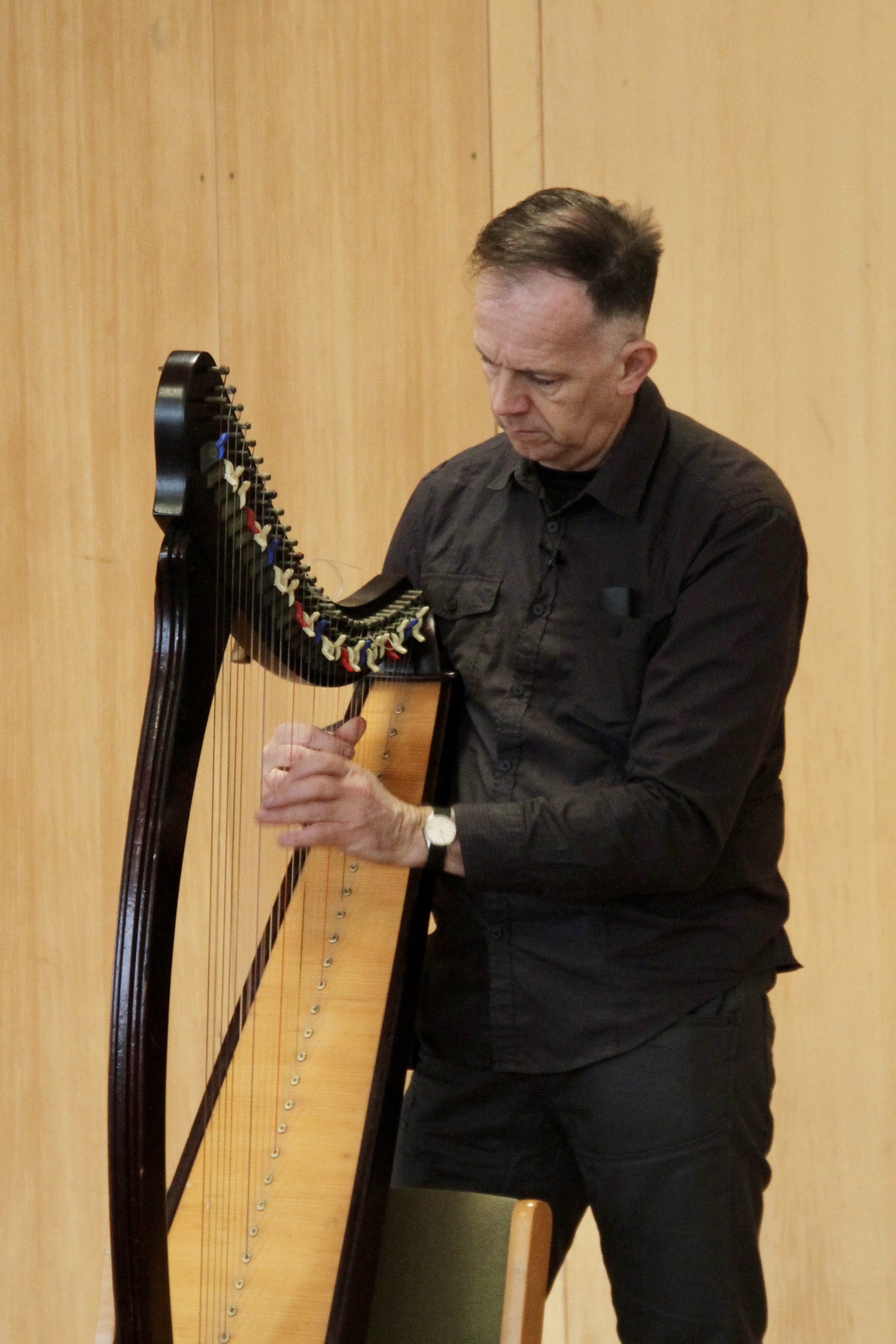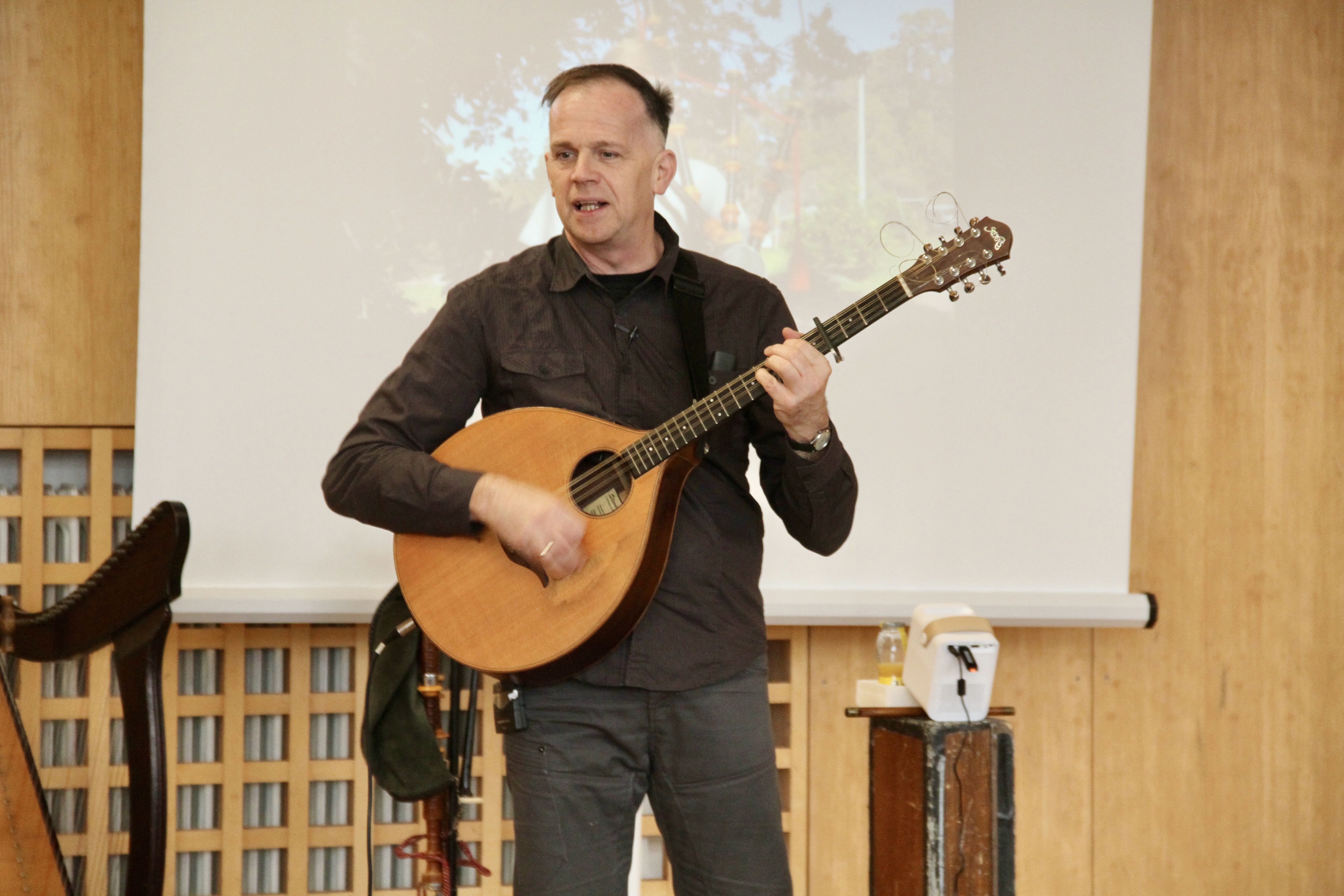 Die Schülerinnen und Schüler, die mit sichtlicher und spürbarer Freude dabei waren, bekamen irische und schottische Weihnachtslieder und weihnachtliche Musik zu hören. Tom Hake spielte Harfe, Dudelsack und irische Bouzouki – und eine Flöte, die er als Junge zu Weihnachten geschenkt bekommen hatte und die der Auslöser dafür war, dass er Musiker wurde. Darüber hinaus erzählte er von weihnachtlichen Bräuchen und Traditionen im ehemals keltischen Kulturbereich.