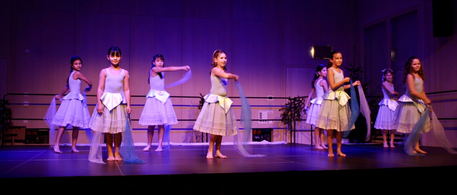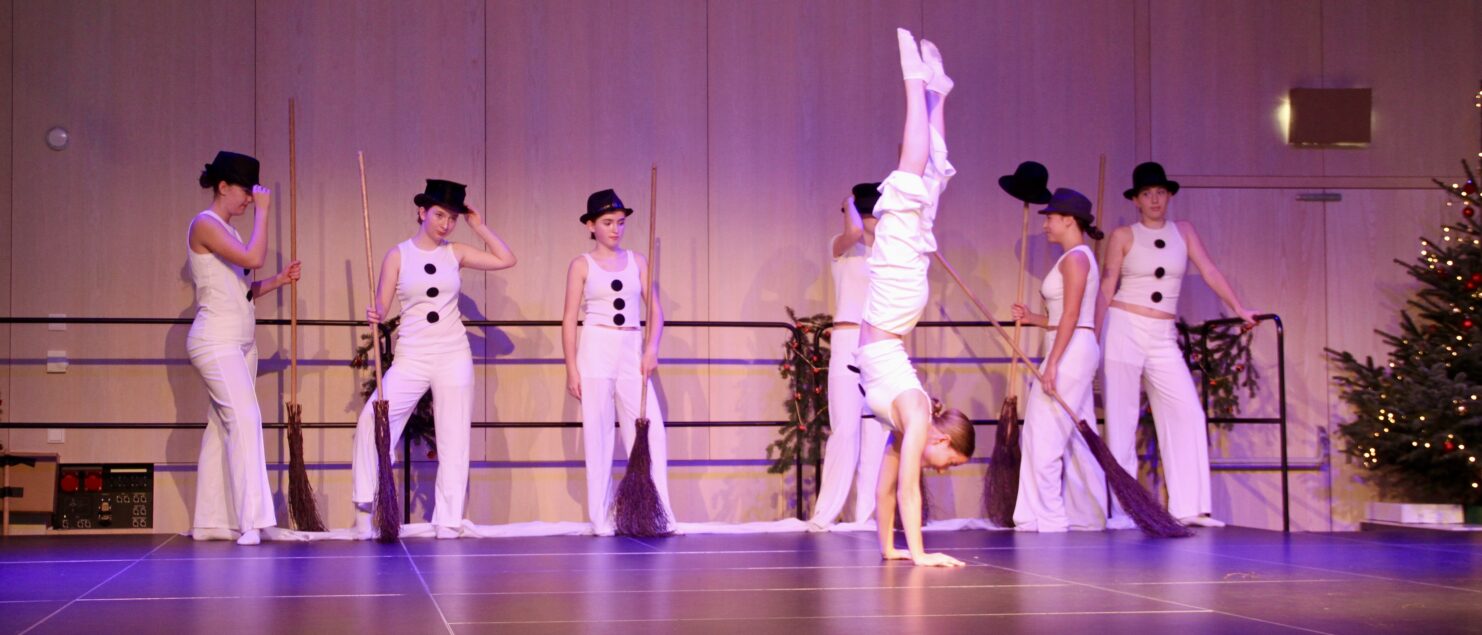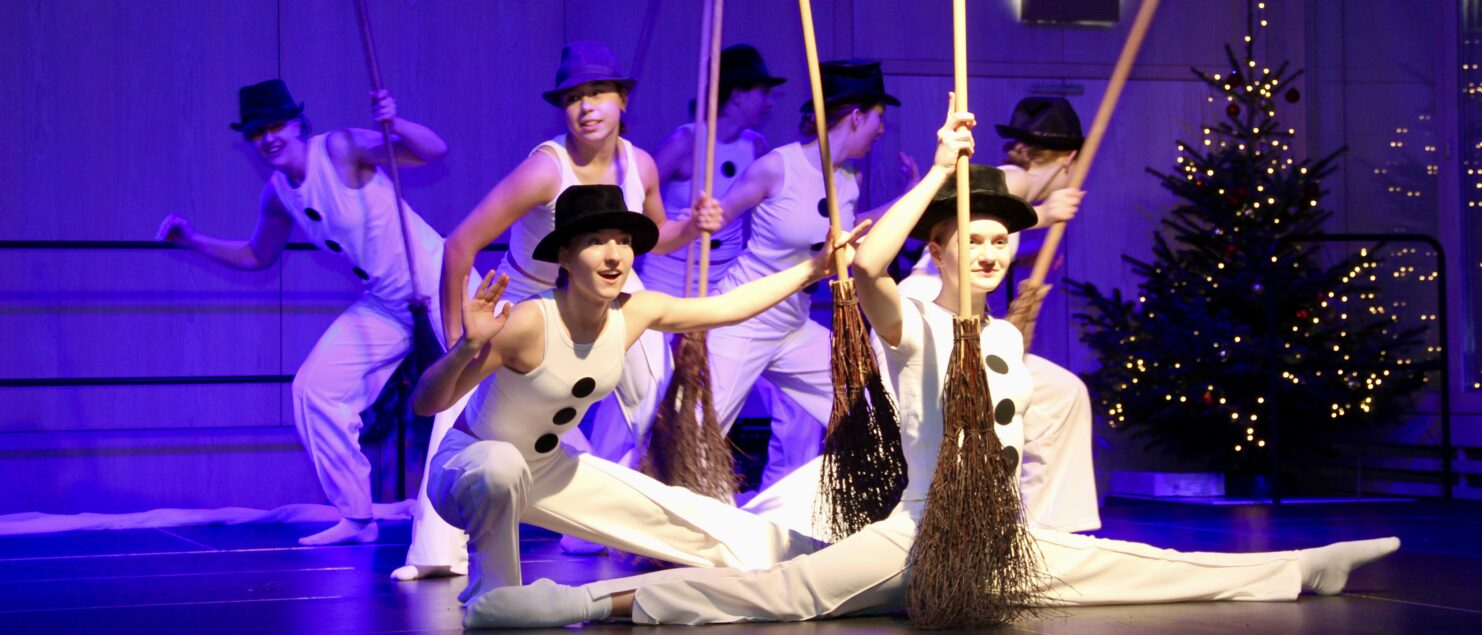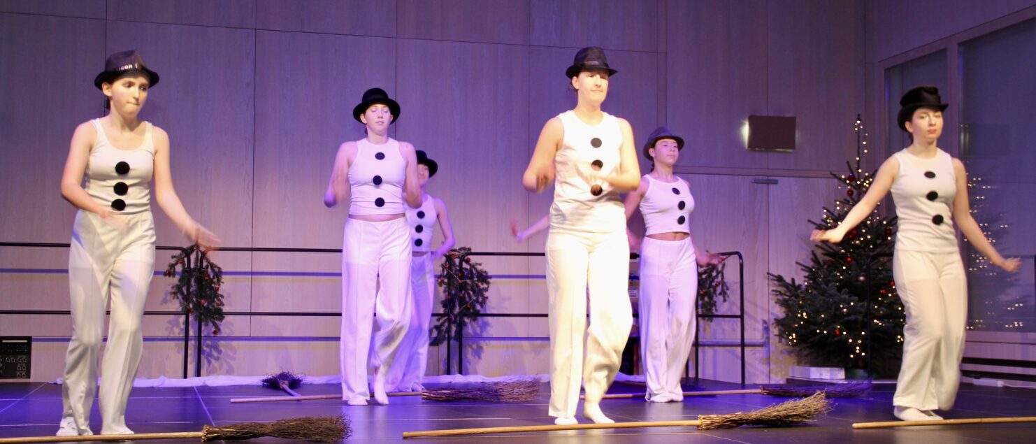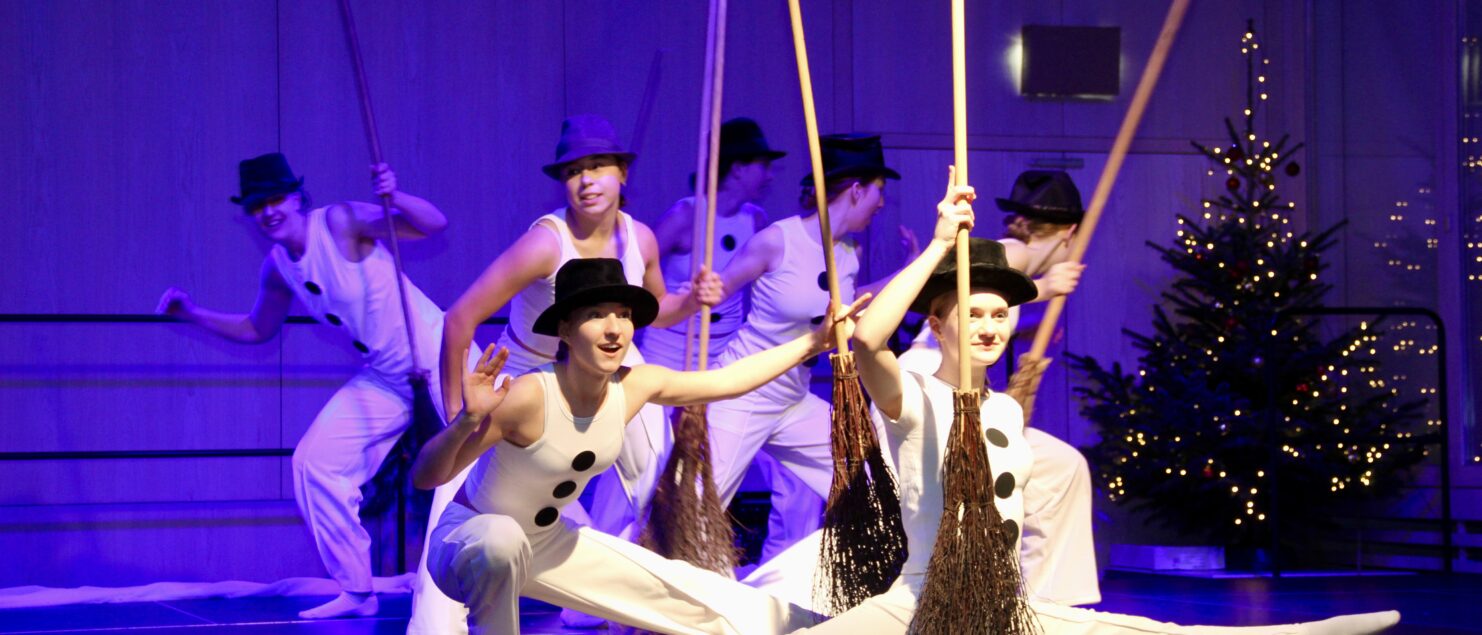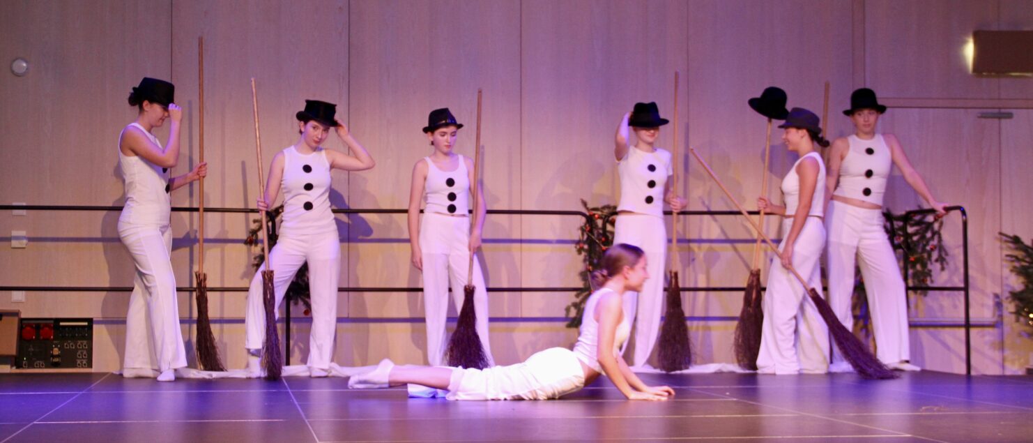 27 Tänzerinnen und ein Tänzer erzählten mit hinreißenden Tanzdarbietungen das Wintermärchen von zwei Kindern, die vor Weihnachten sehnsüchtig auf die ersten Schneeflocken warten. Während sie schlafen, beginnt es zu schneien. Als sie die weiße Pracht erblicken, können sie es nicht erwarten, hinauszugehen und einen Schneemann zu bauen.