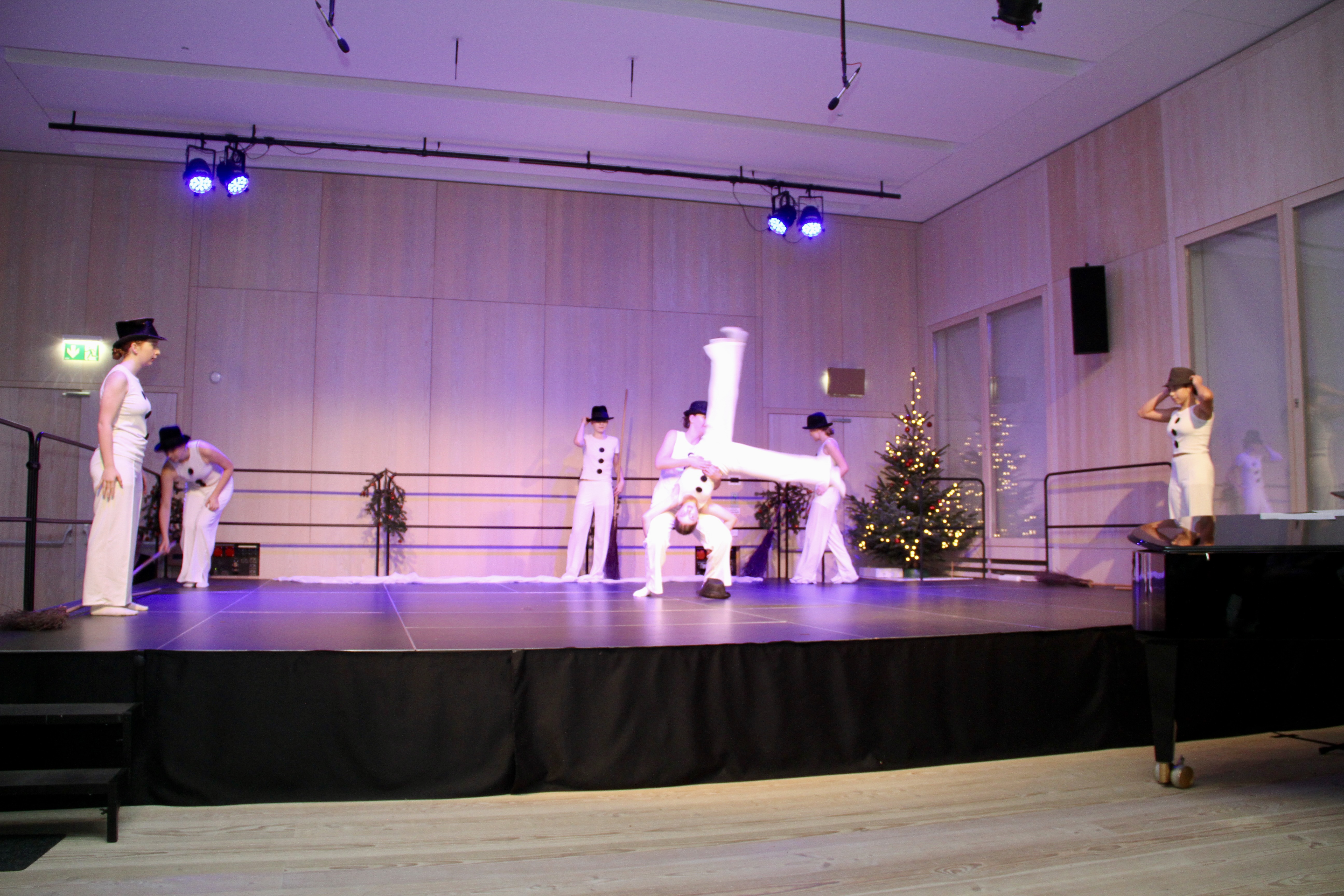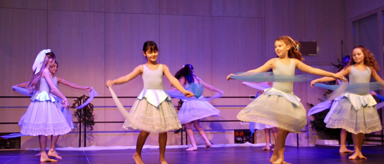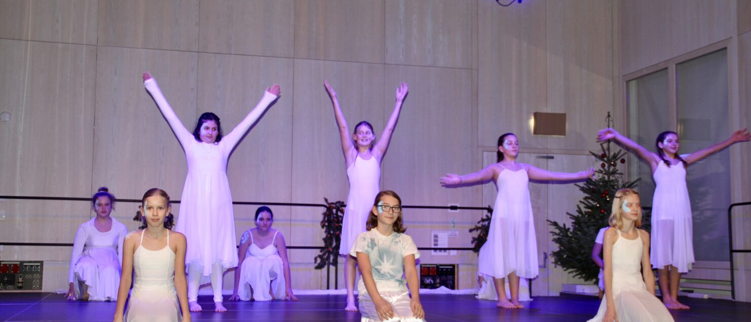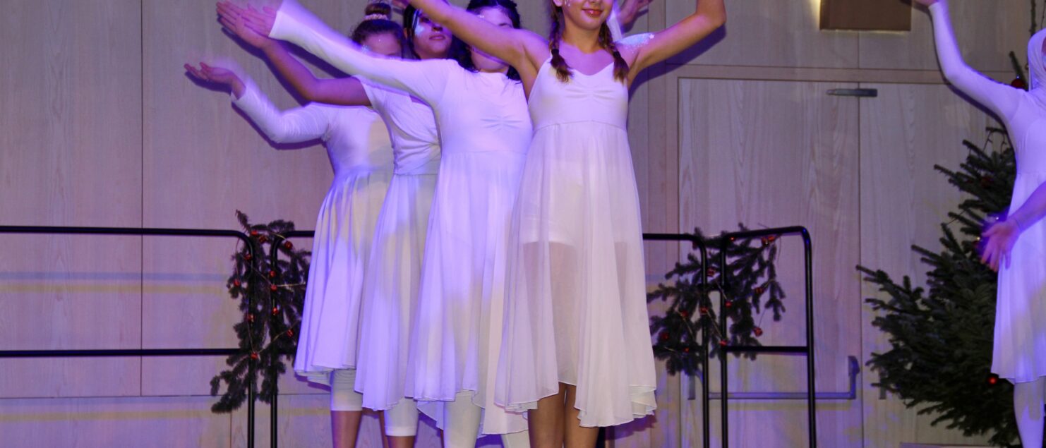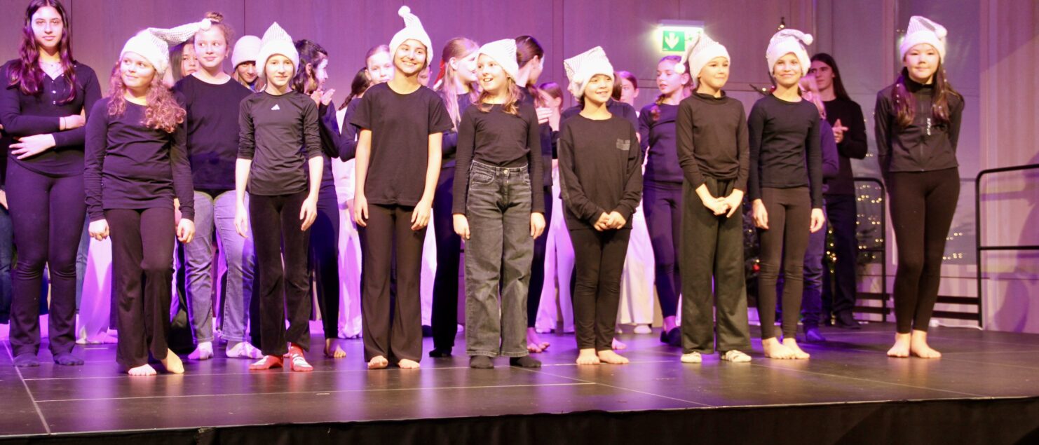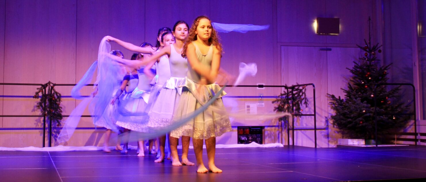 27 Tänzerinnen und ein Tänzer erzählten mit hinreißenden Tanzdarbietungen das Wintermärchen von zwei Kindern, die vor Weihnachten sehnsüchtig auf die ersten Schneeflocken warten. Während sie schlafen, beginnt es zu schneien. Als sie die weiße Pracht erblicken, können sie es nicht erwarten, hinauszugehen und einen Schneemann zu bauen.
