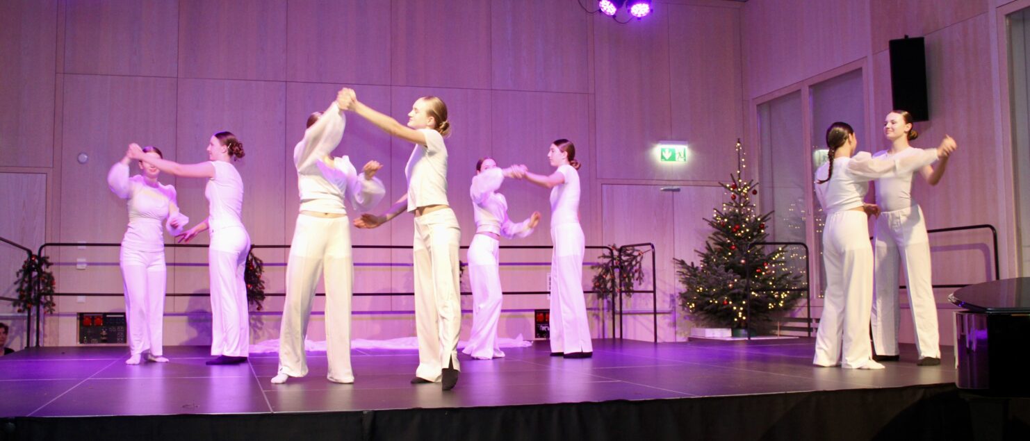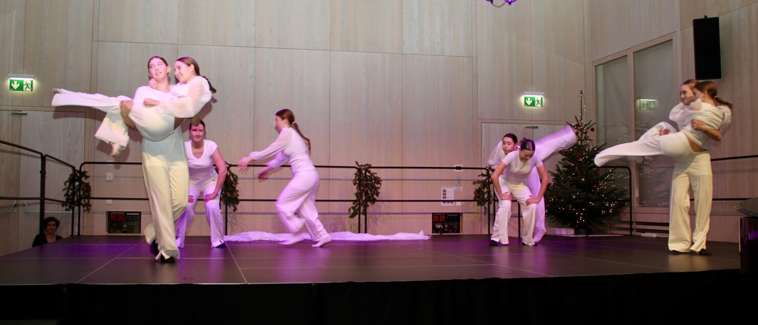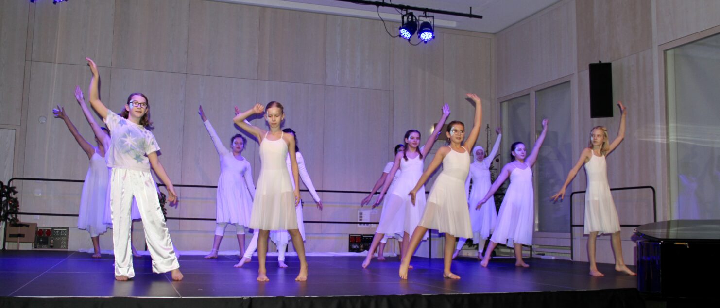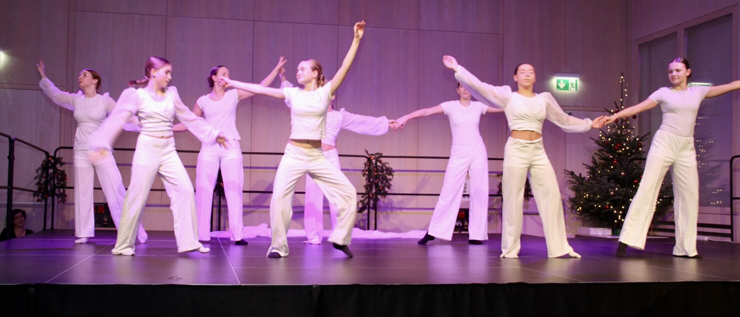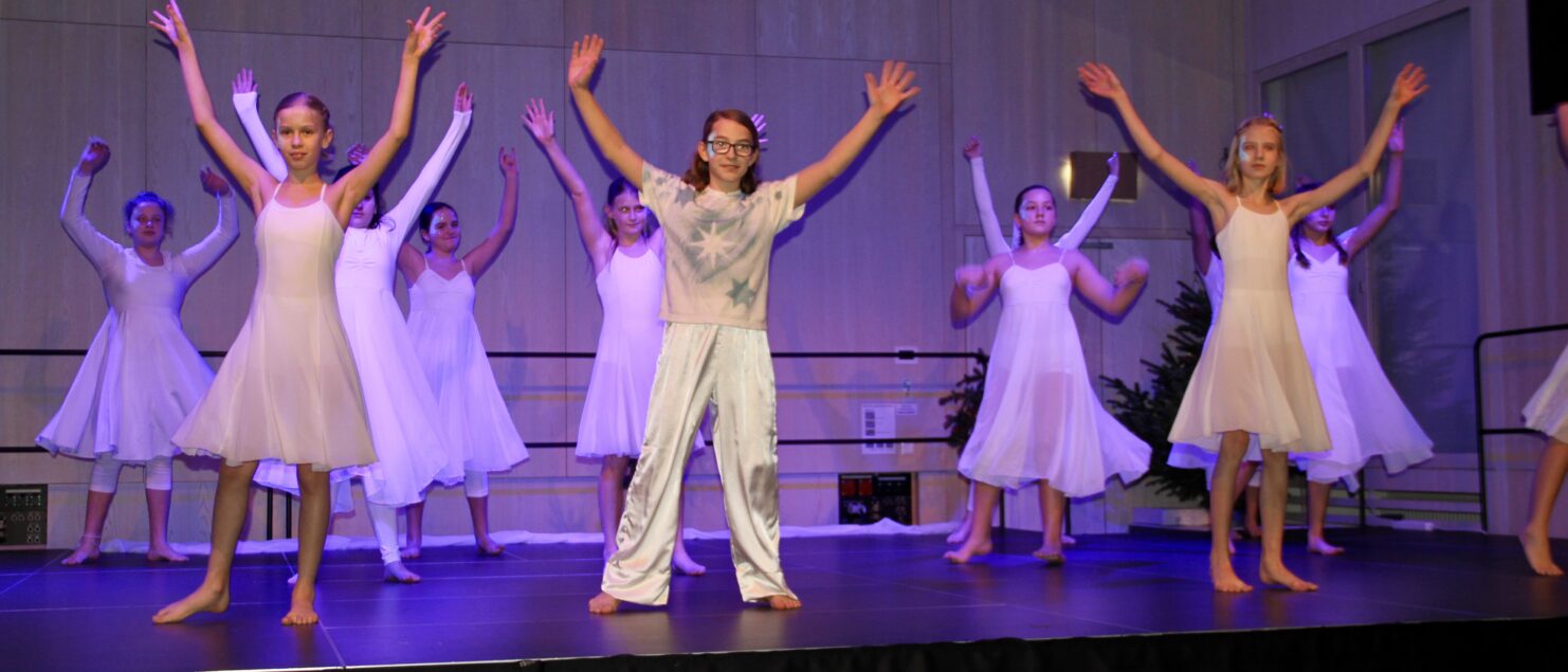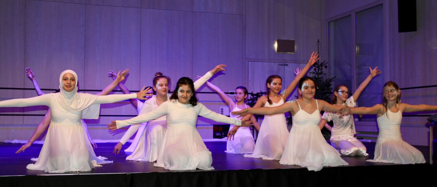 27 Tänzerinnen und ein Tänzer erzählten mit hinreißenden Tanzdarbietungen das Wintermärchen von zwei Kindern, die vor Weihnachten sehnsüchtig auf die ersten Schneeflocken warten. Während sie schlafen, beginnt es zu schneien. Als sie die weiße Pracht erblicken, können sie es nicht erwarten, hinauszugehen und einen Schneemann zu bauen.
