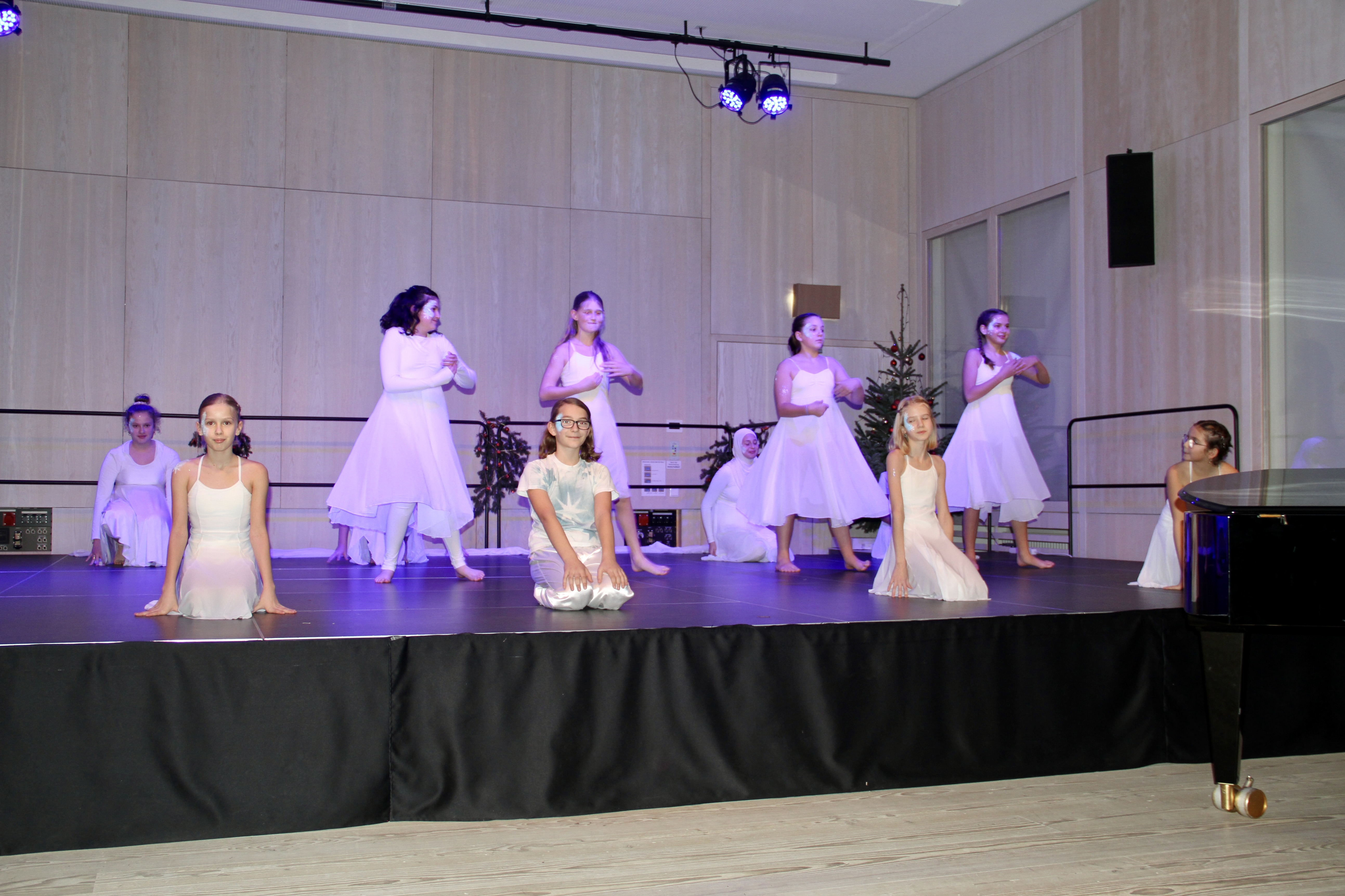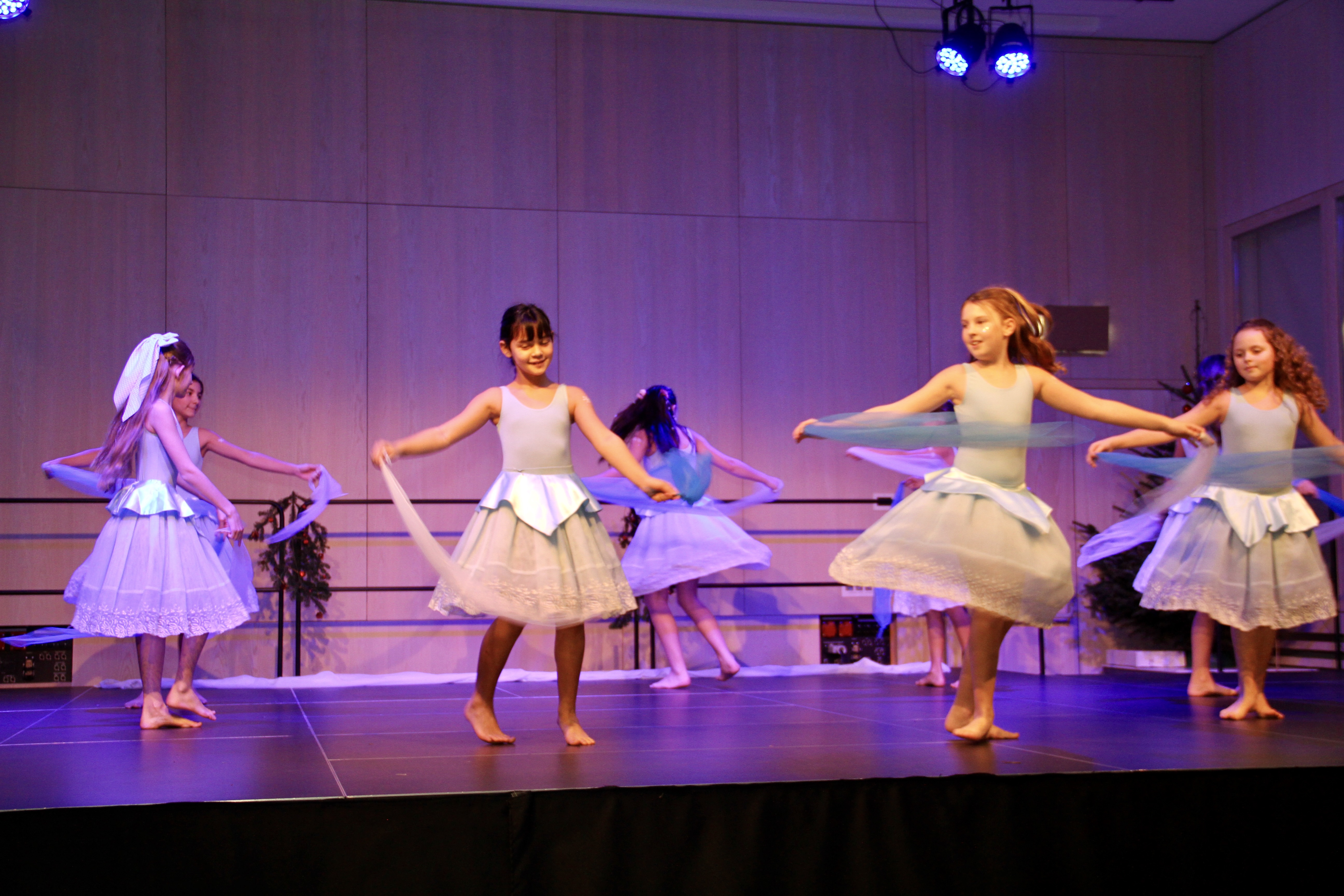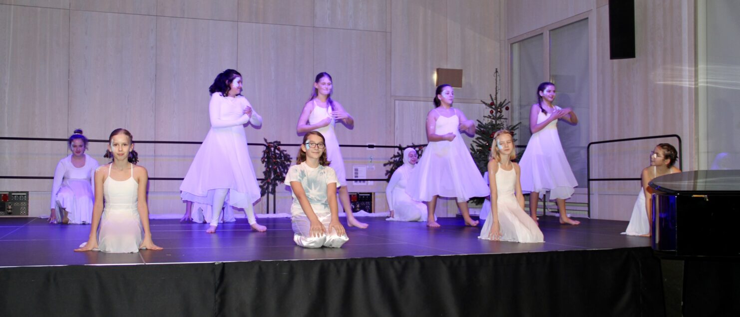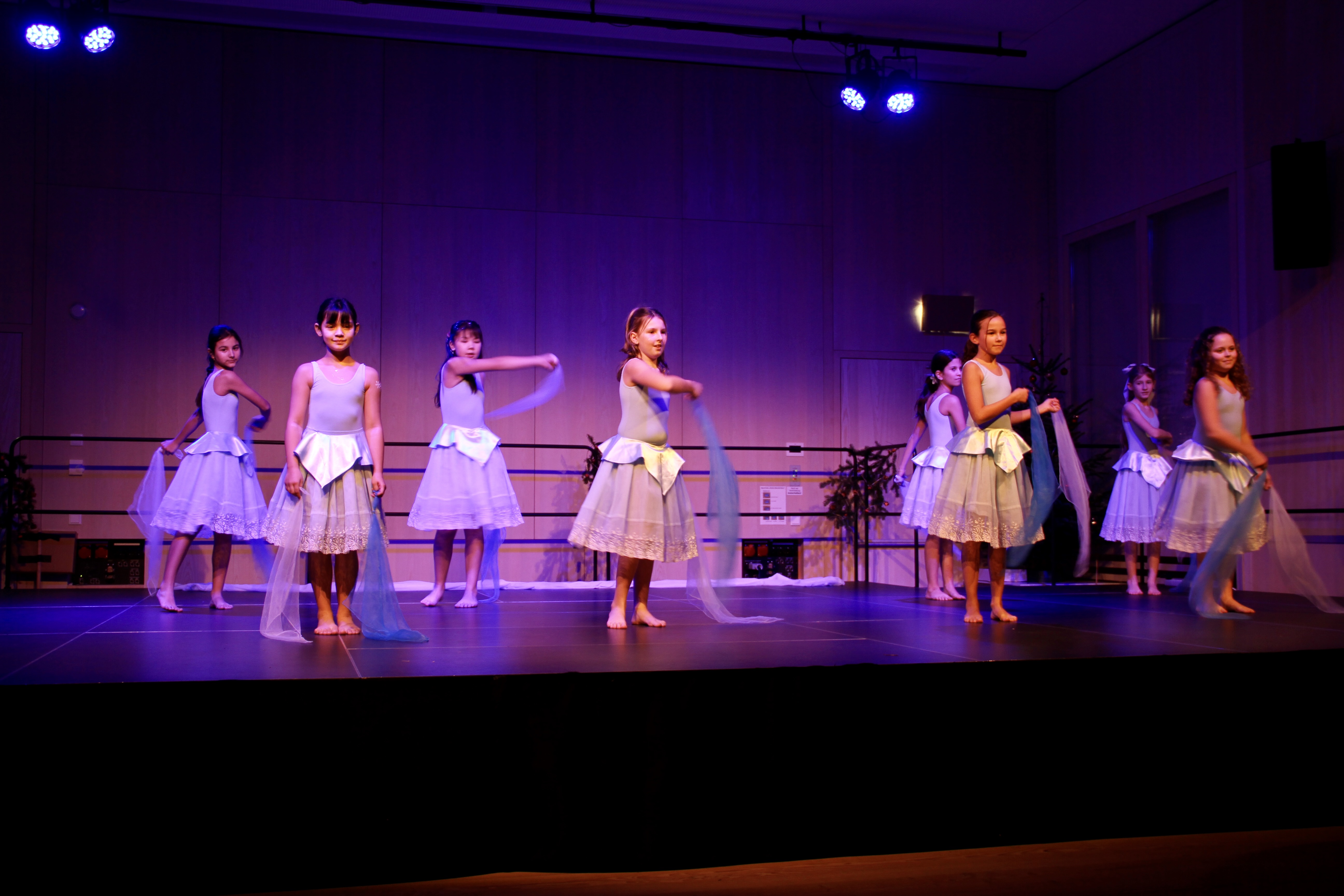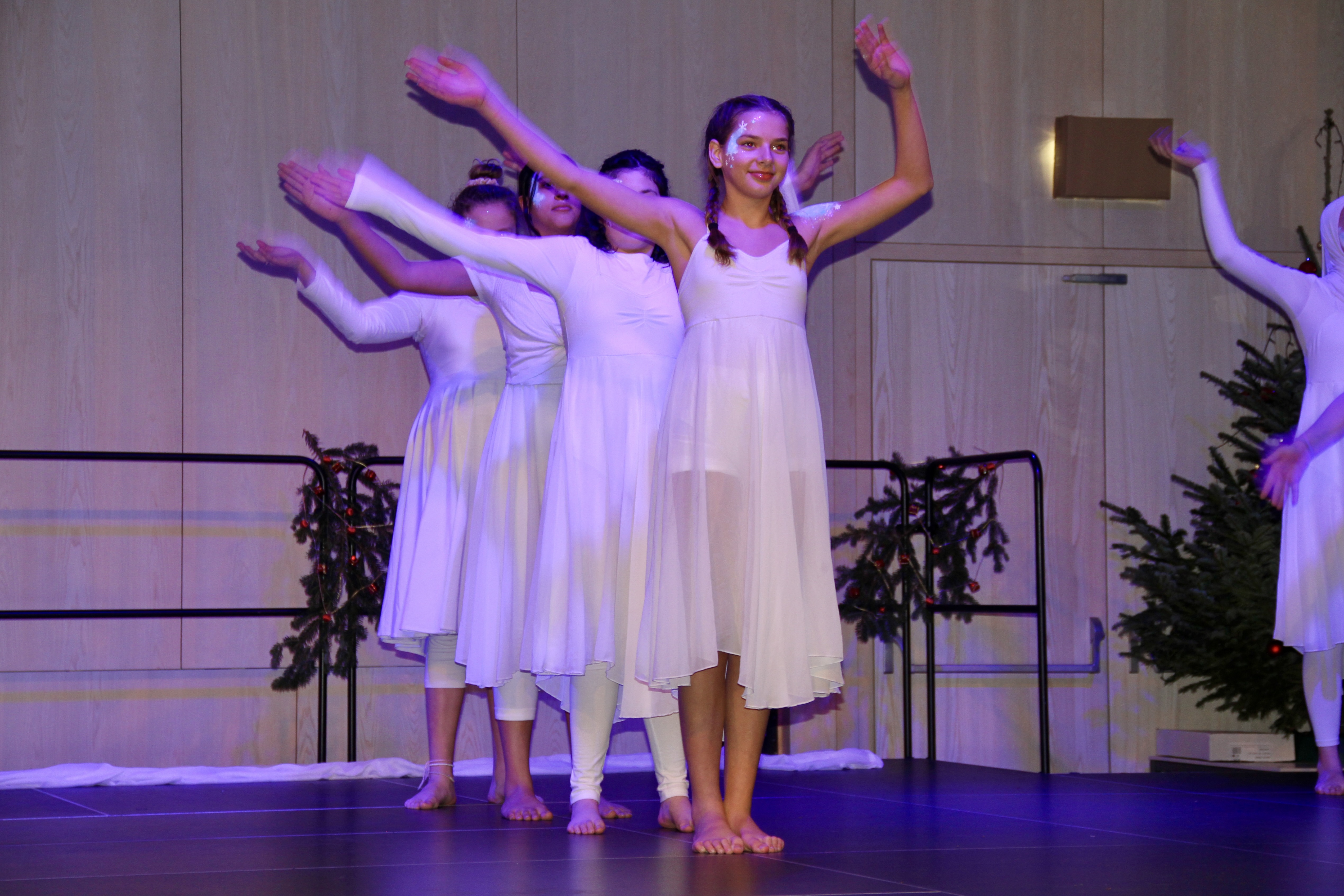 27 Tänzerinnen und ein Tänzer erzählten mit hinreißenden Tanzdarbietungen das Wintermärchen von zwei Kindern, die vor Weihnachten sehnsüchtig auf die ersten Schneeflocken warten. Während sie schlafen, beginnt es zu schneien. Als sie die weiße Pracht erblicken, können sie es nicht erwarten, hinauszugehen und einen Schneemann zu bauen.