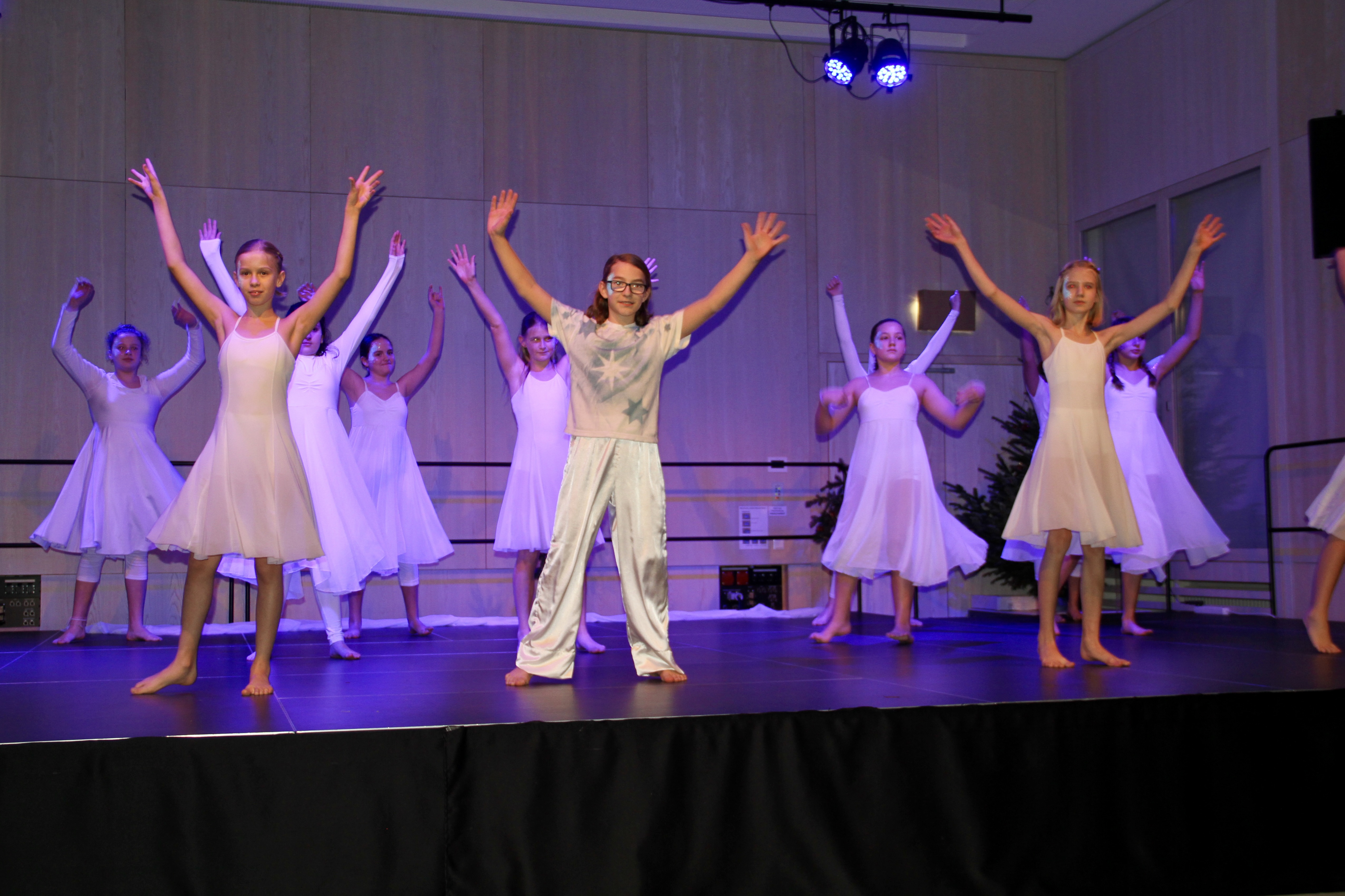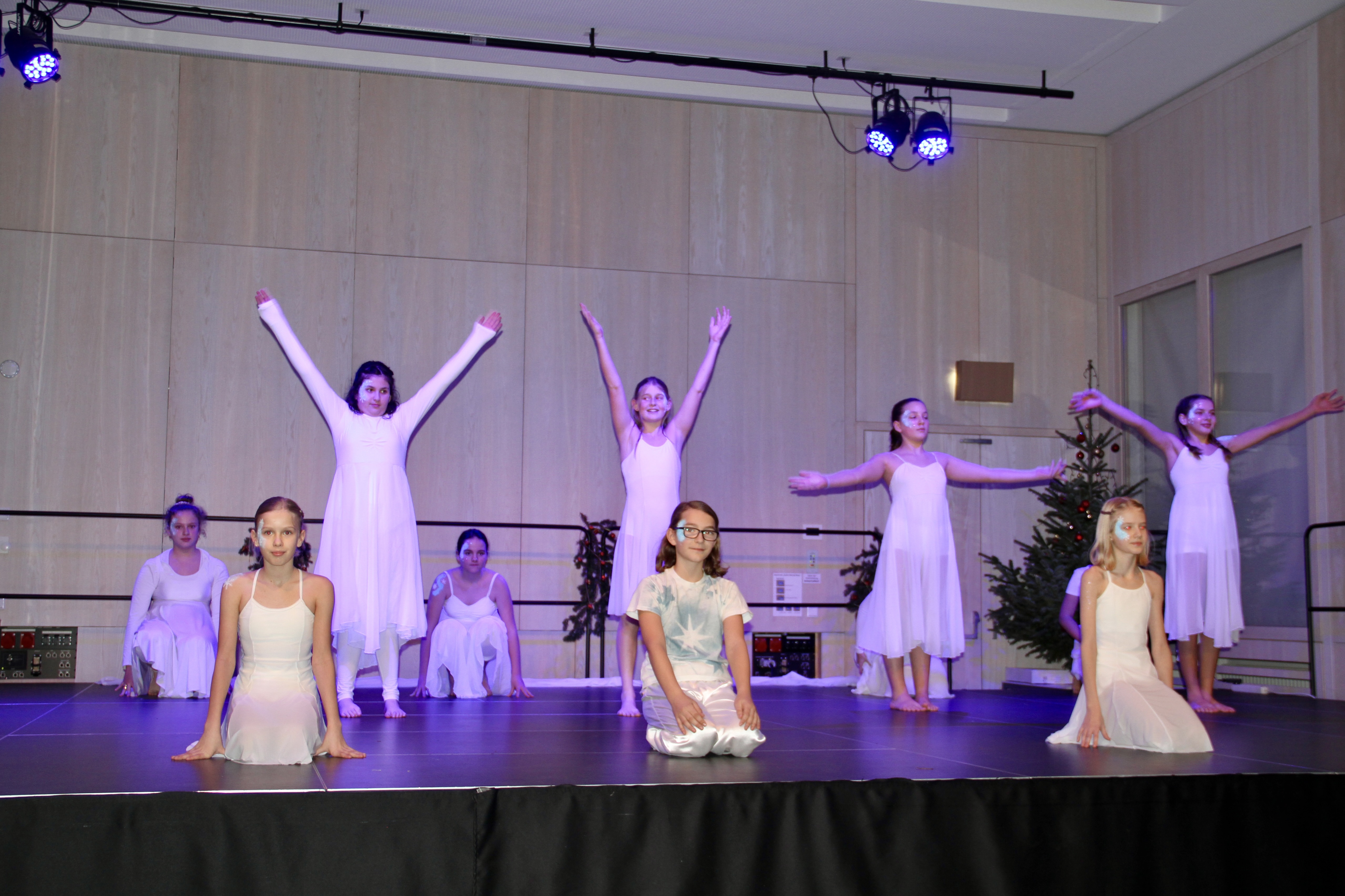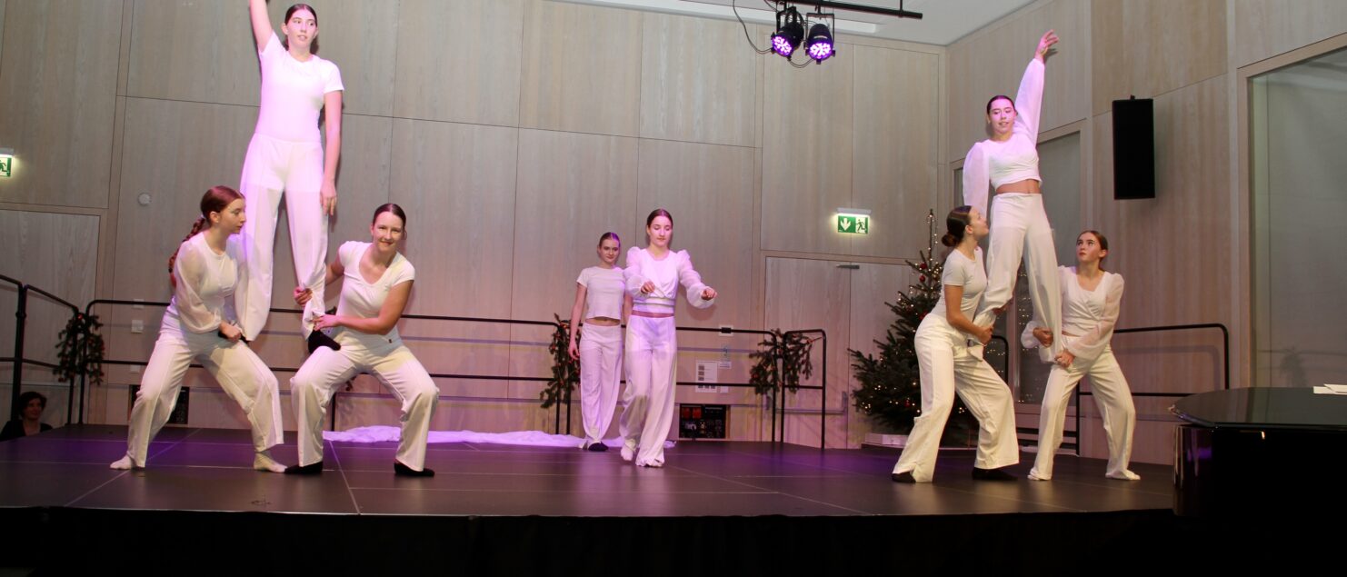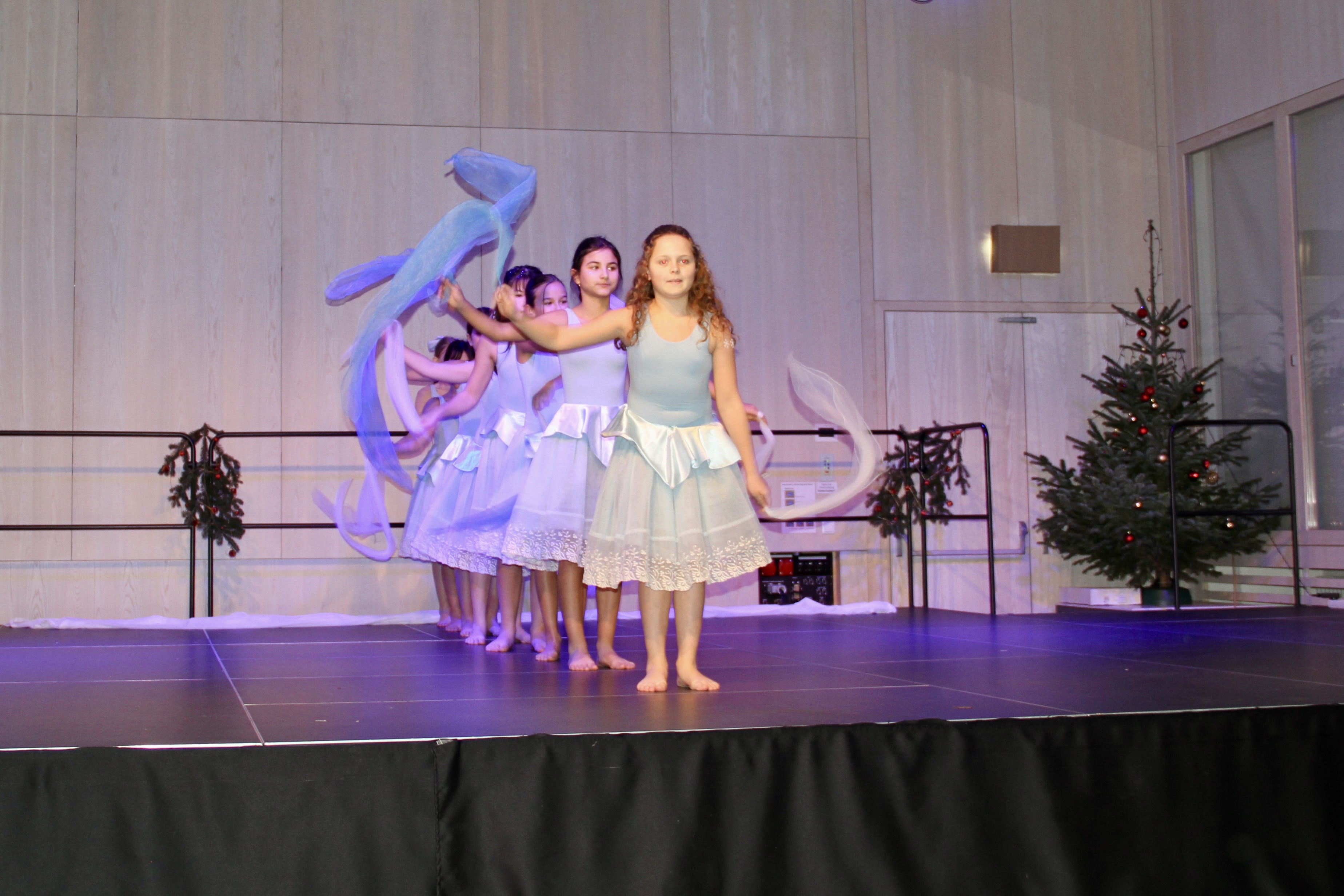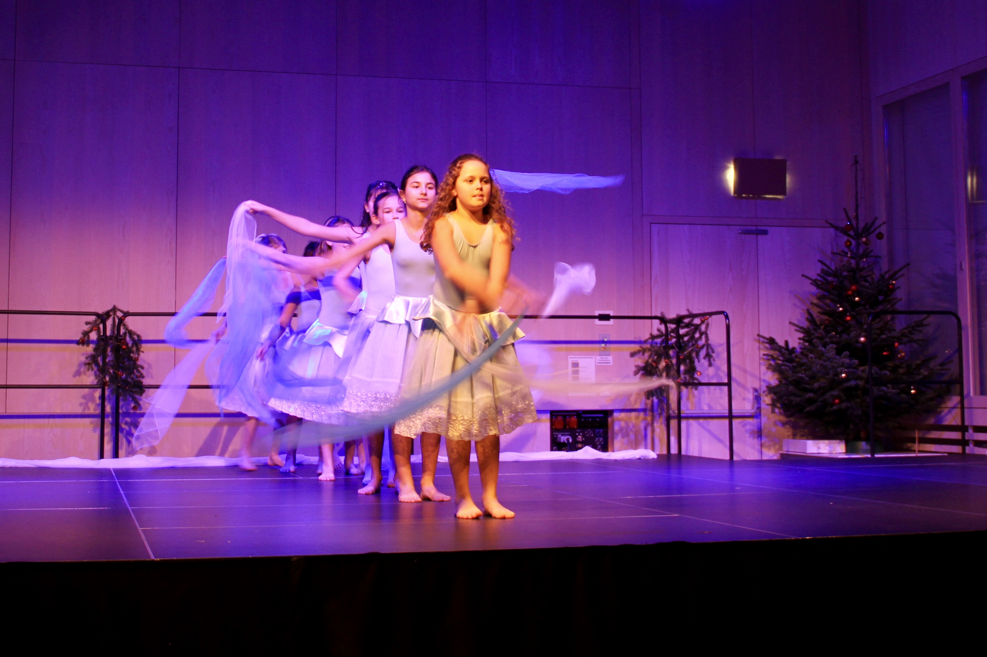 27 Tänzerinnen und ein Tänzer erzählten mit hinreißenden Tanzdarbietungen das Wintermärchen von zwei Kindern, die vor Weihnachten sehnsüchtig auf die ersten Schneeflocken warten. Während sie schlafen, beginnt es zu schneien. Als sie die weiße Pracht erblicken, können sie es nicht erwarten, hinauszugehen und einen Schneemann zu bauen.