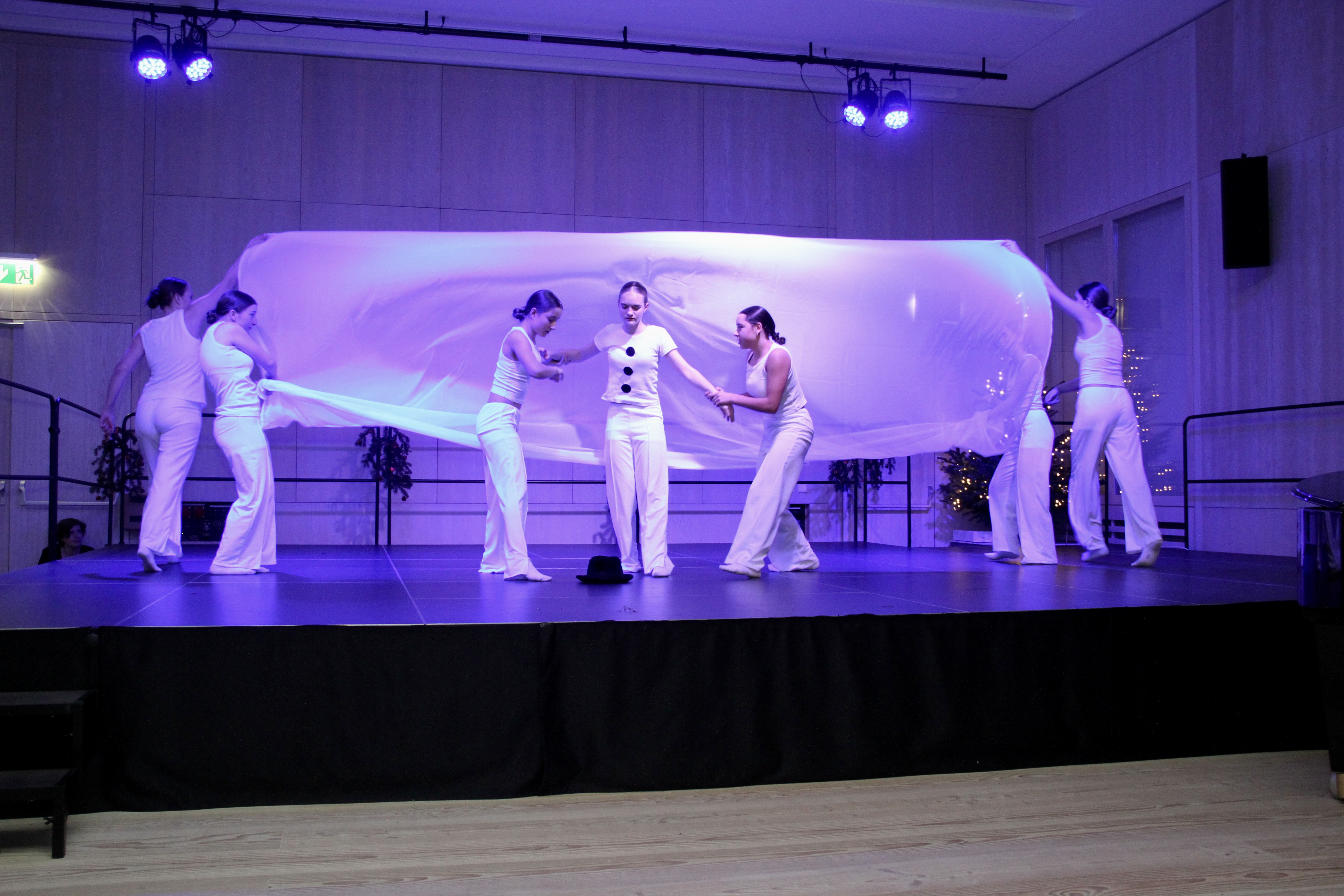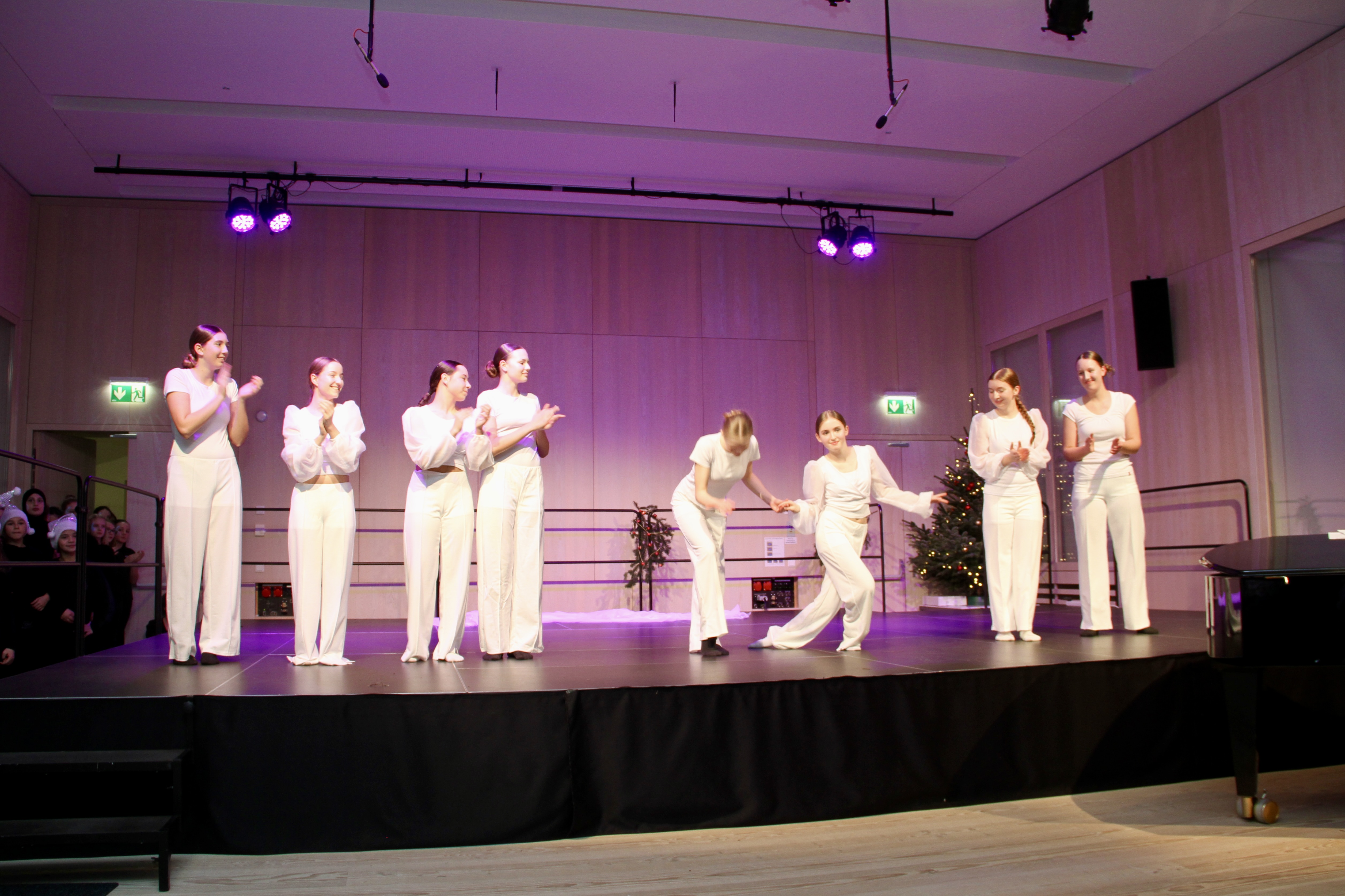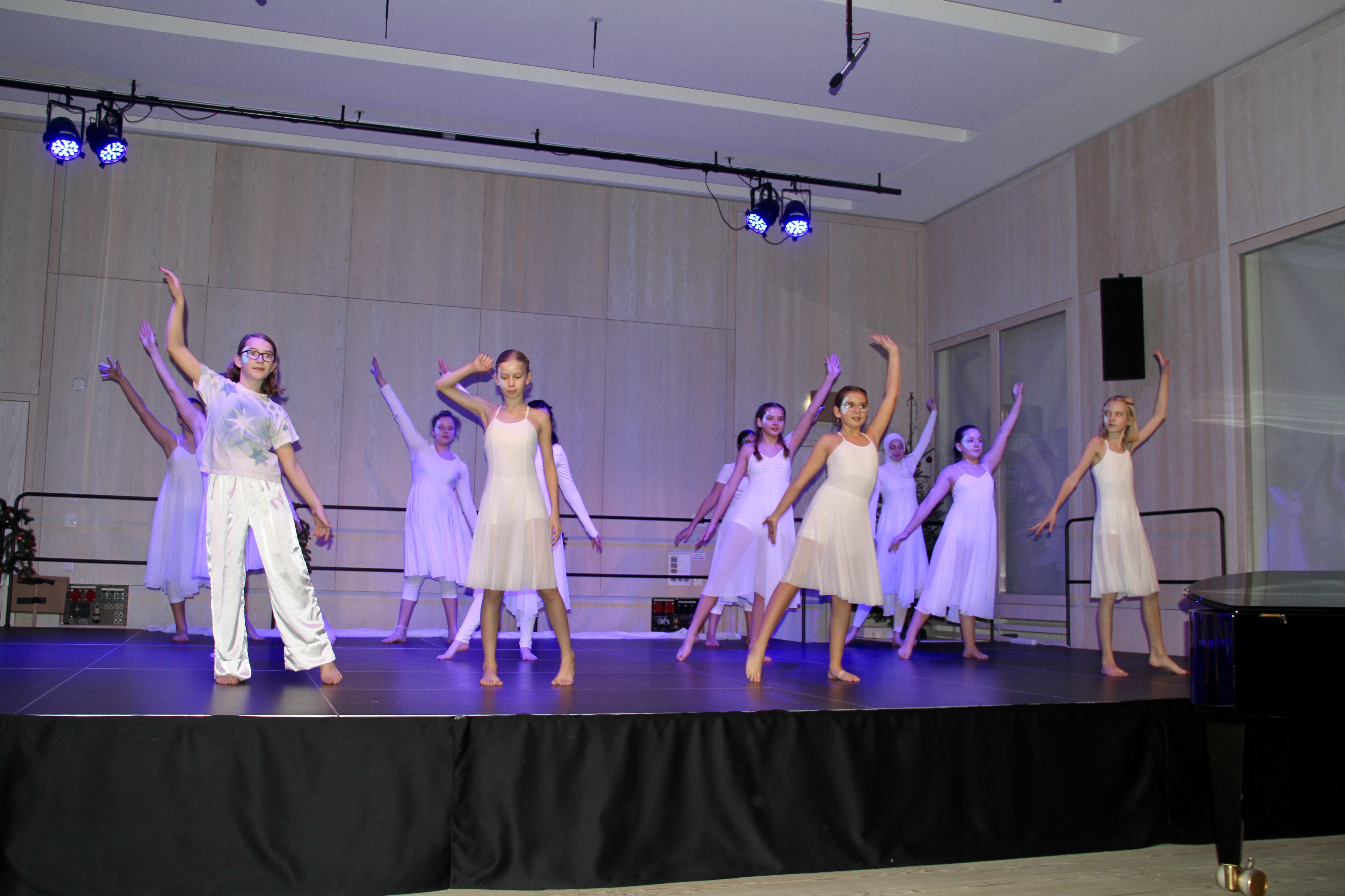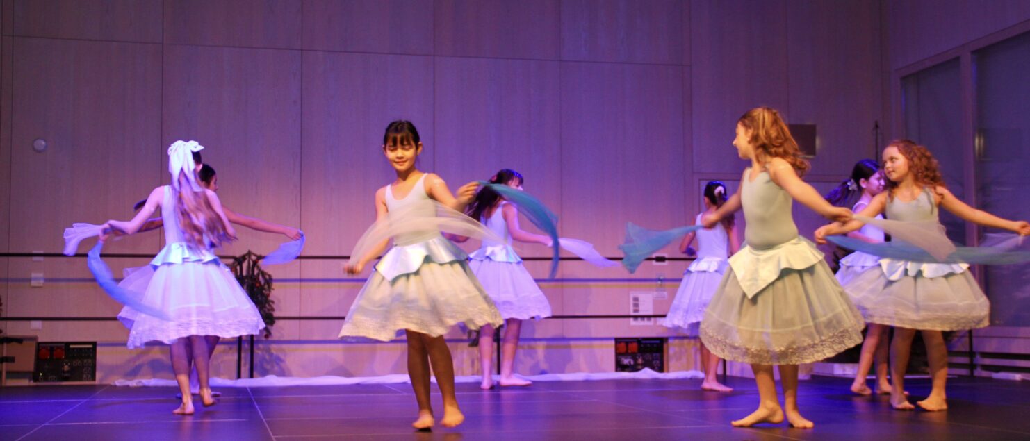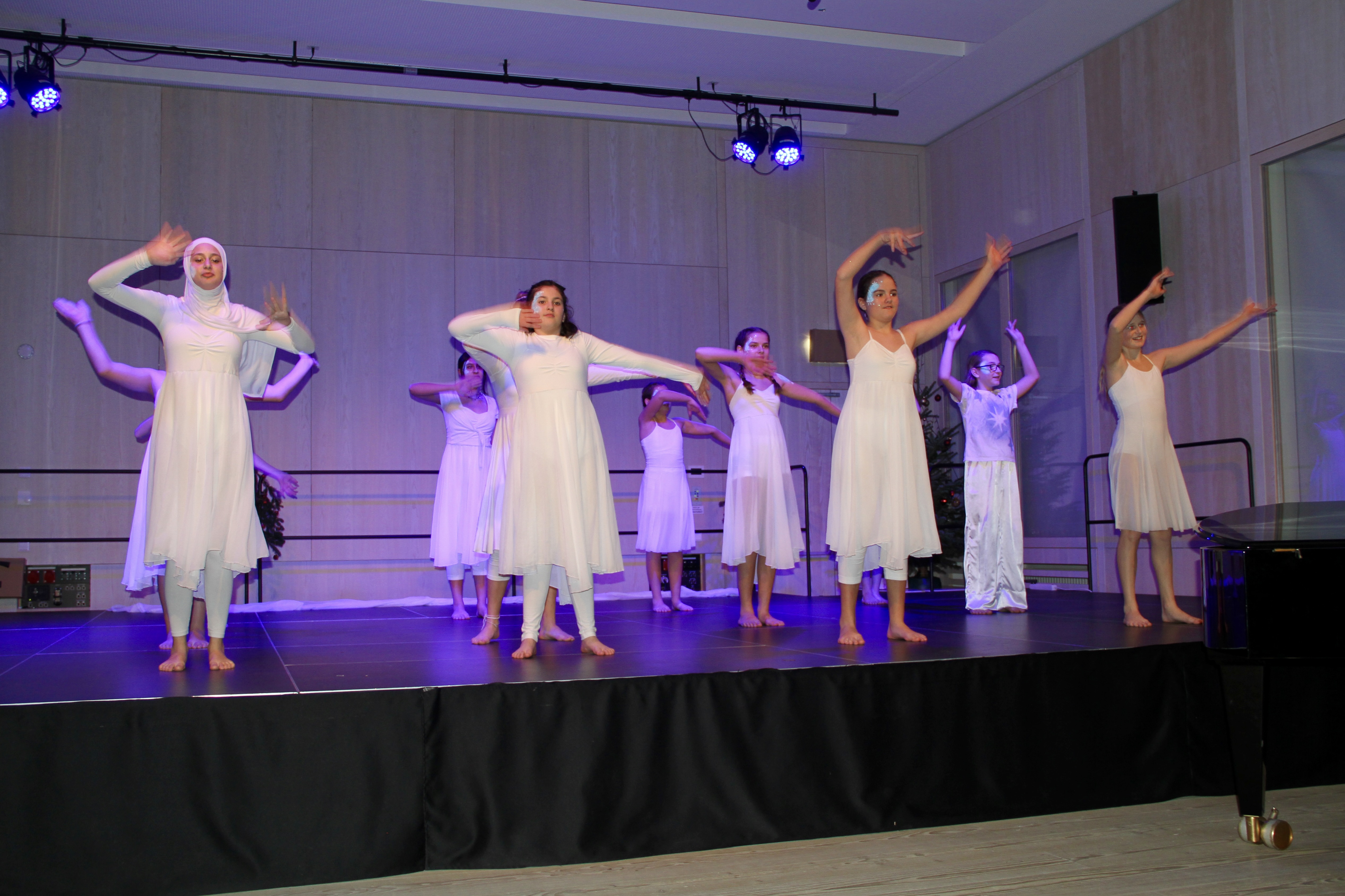 27 Tänzerinnen und ein Tänzer erzählten mit hinreißenden Tanzdarbietungen das Wintermärchen von zwei Kindern, die vor Weihnachten sehnsüchtig auf die ersten Schneeflocken warten. Während sie schlafen, beginnt es zu schneien. Als sie die weiße Pracht erblicken, können sie es nicht erwarten, hinauszugehen und einen Schneemann zu bauen.