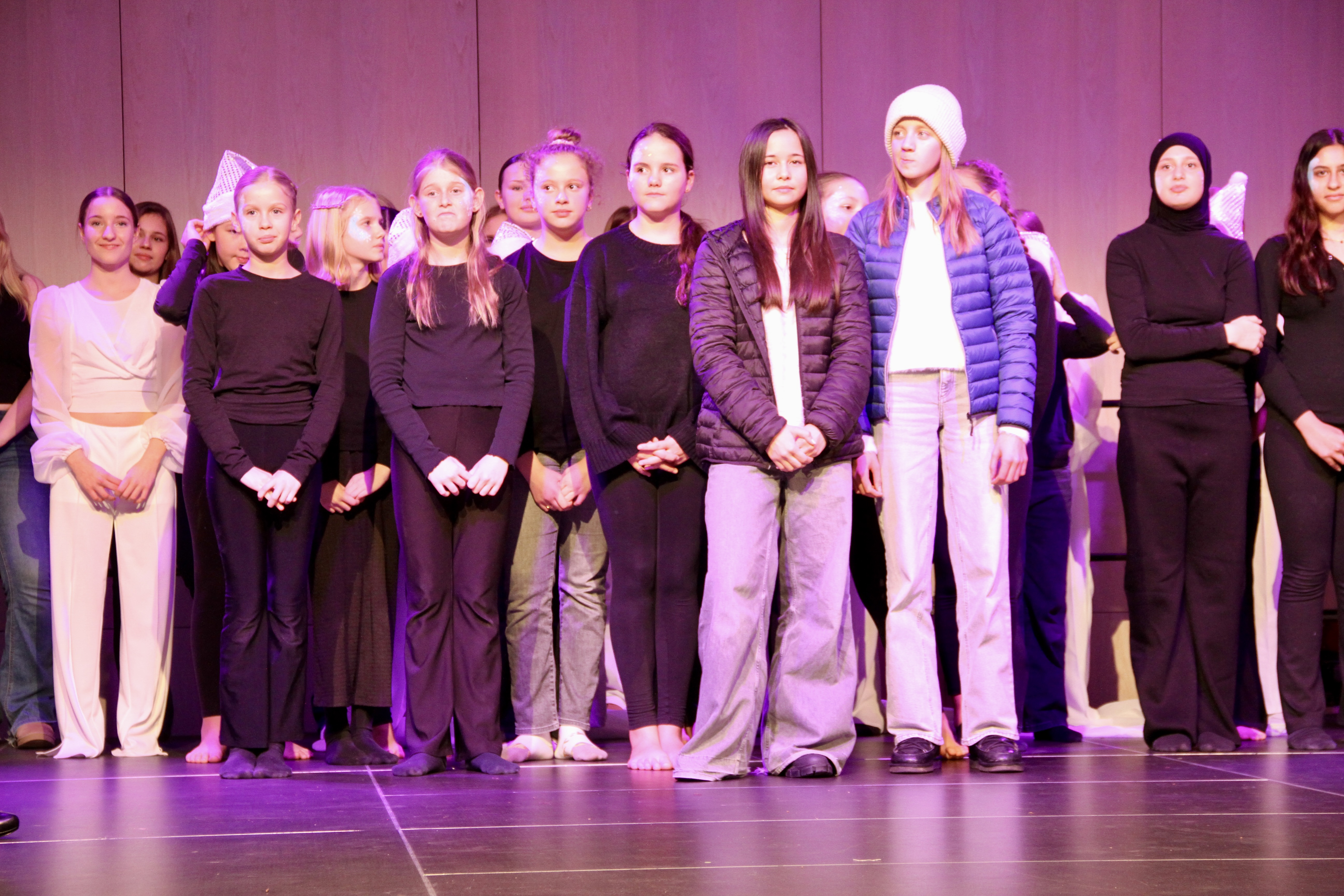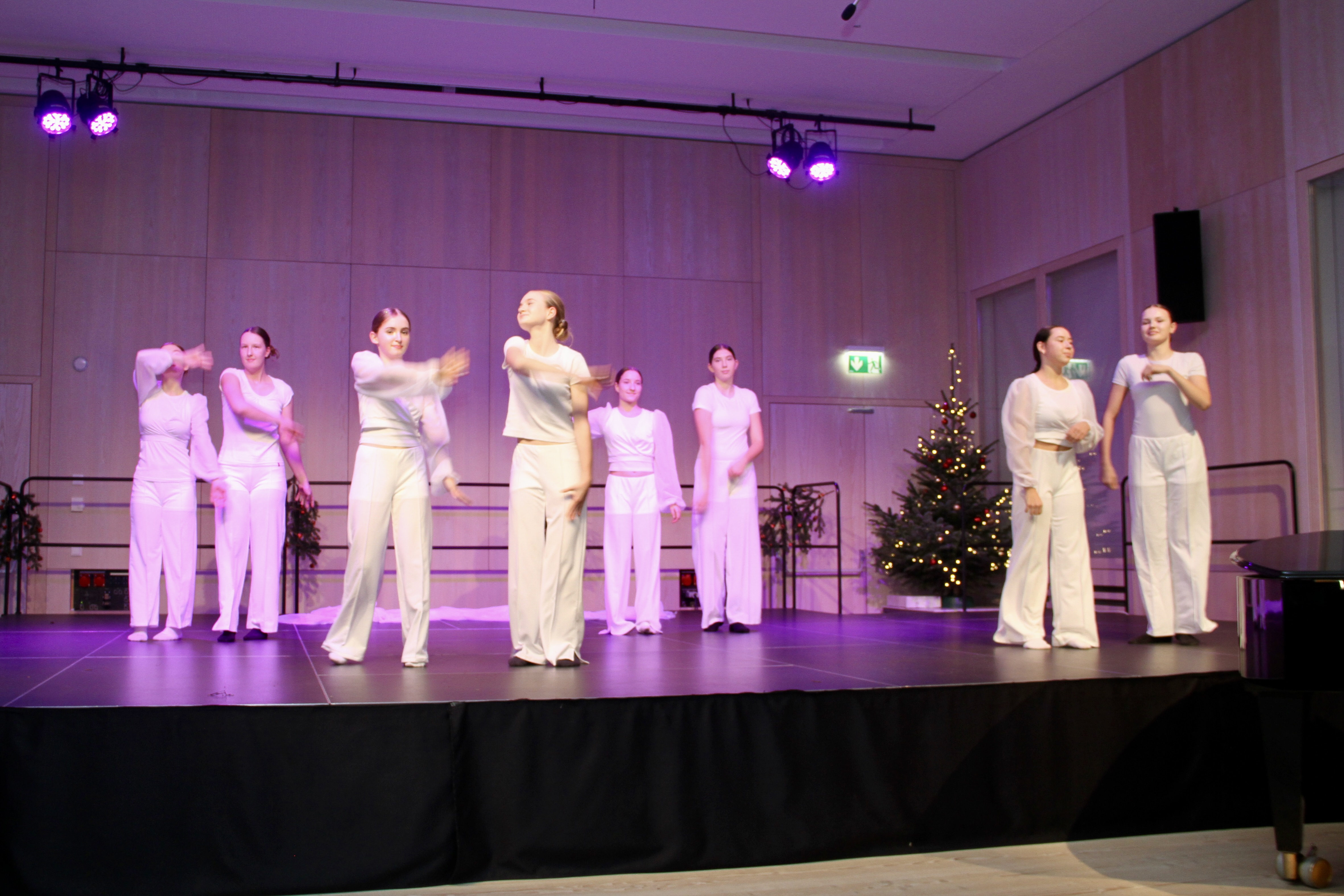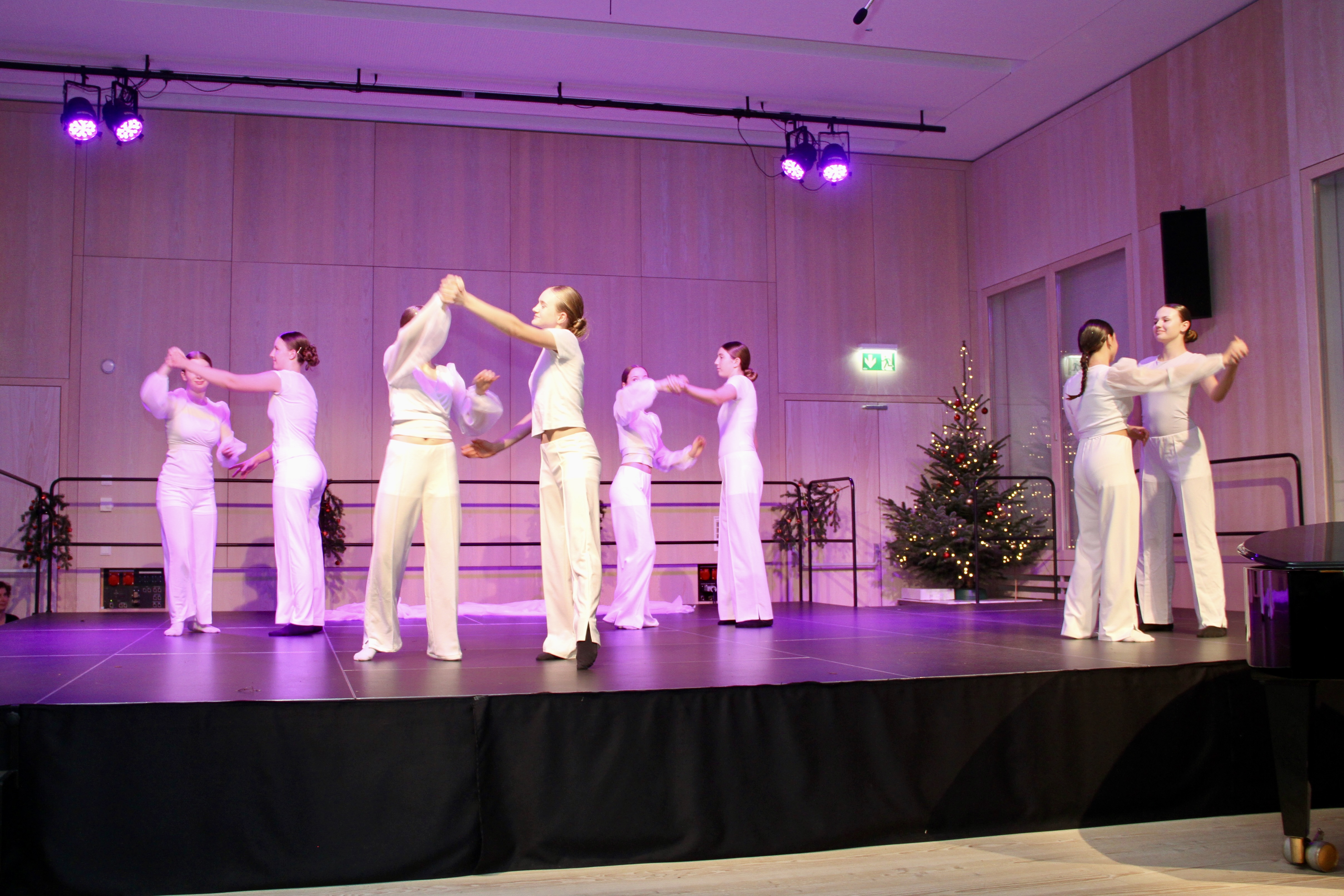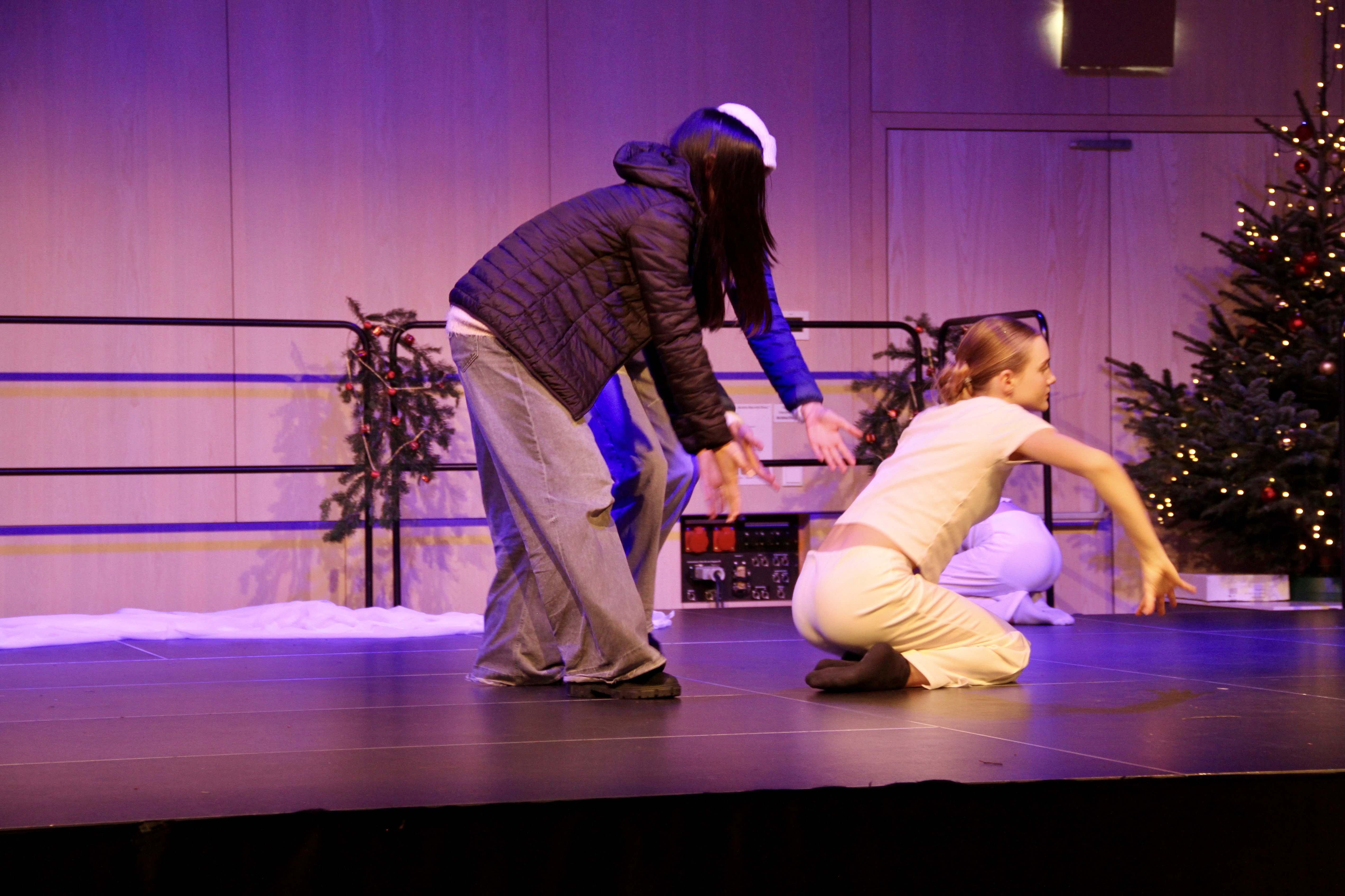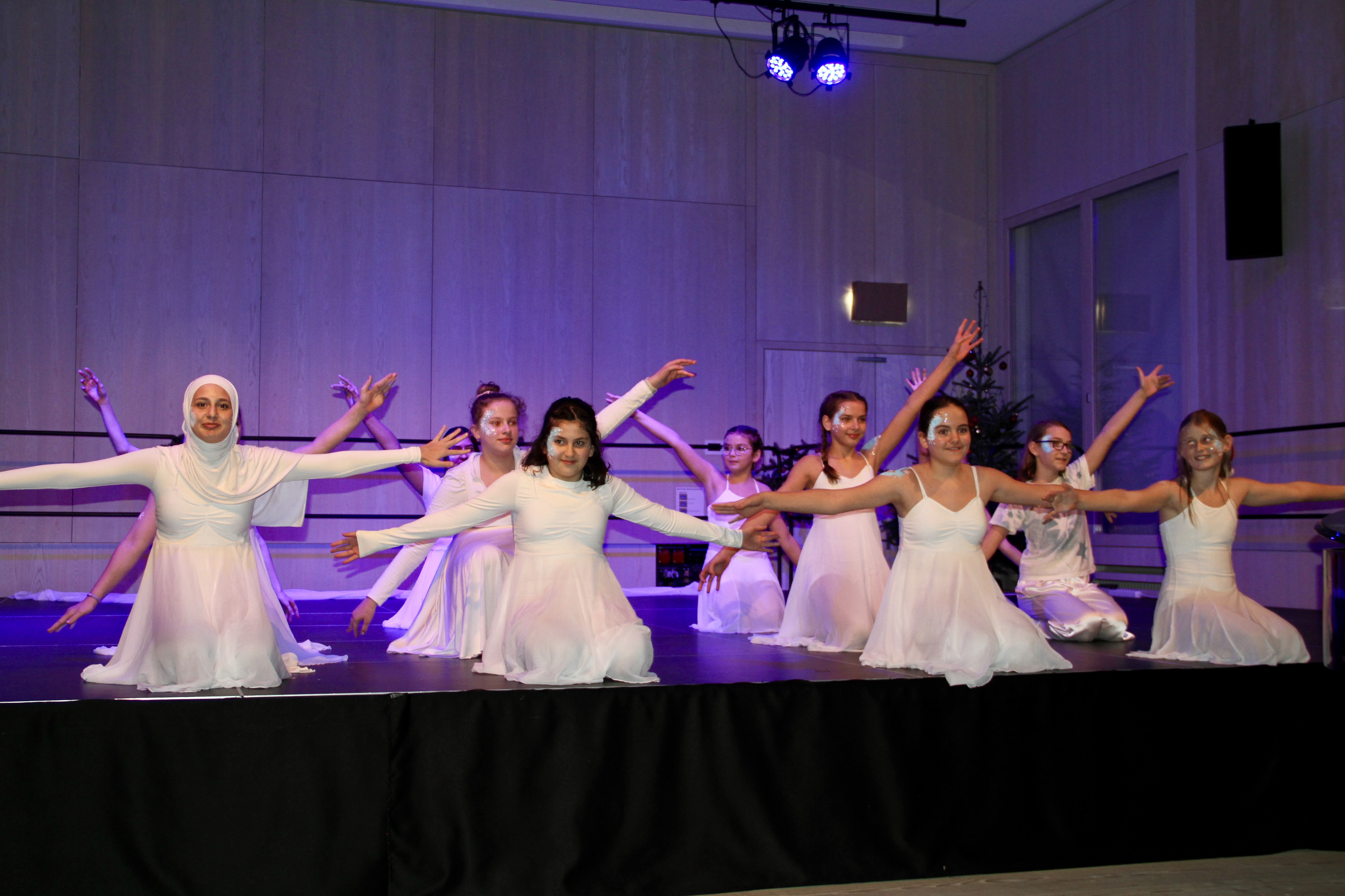 27 Tänzerinnen und ein Tänzer erzählten mit hinreißenden Tanzdarbietungen das Wintermärchen von zwei Kindern, die vor Weihnachten sehnsüchtig auf die ersten Schneeflocken warten. Während sie schlafen, beginnt es zu schneien. Als sie die weiße Pracht erblicken, können sie es nicht erwarten, hinauszugehen und einen Schneemann zu bauen.