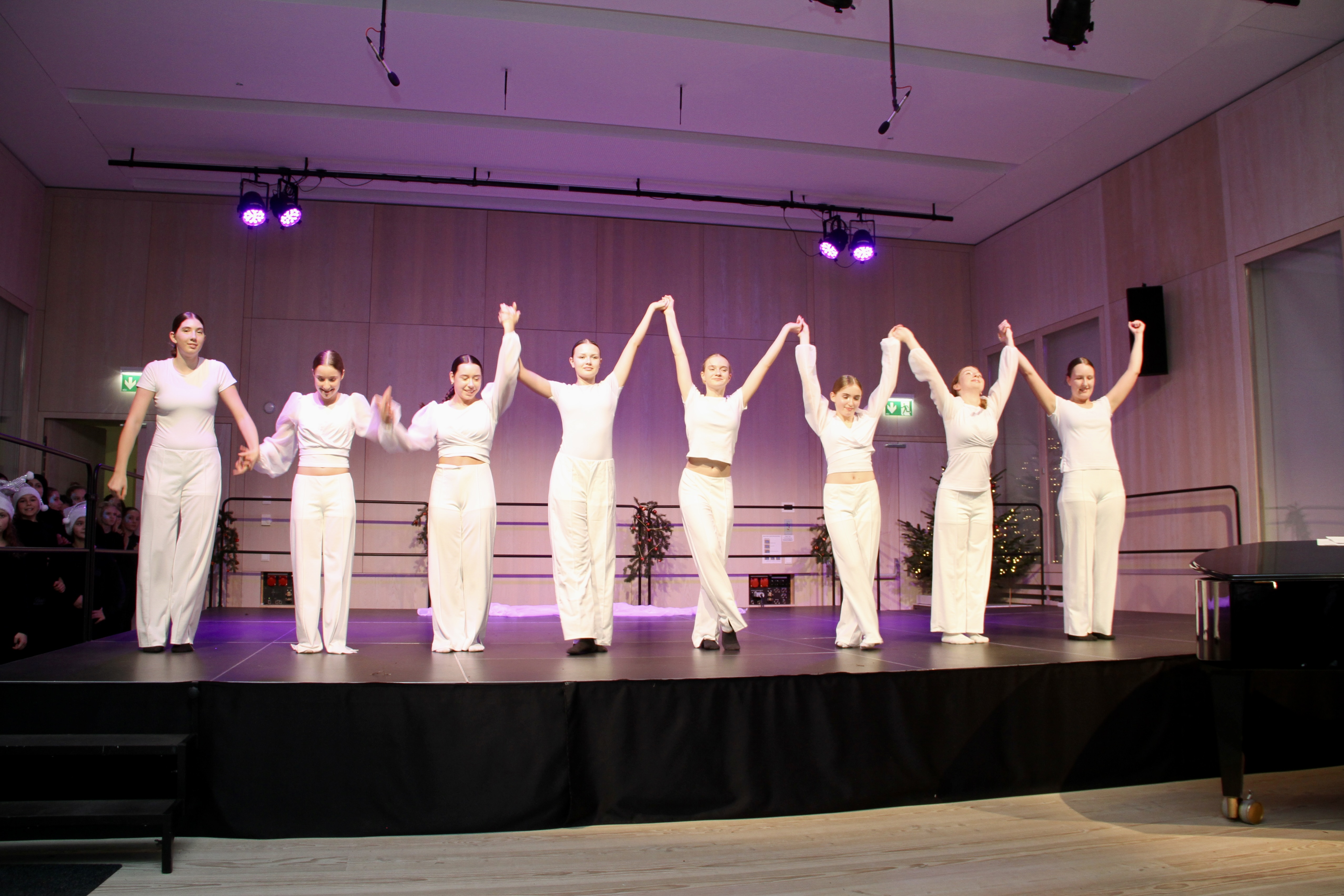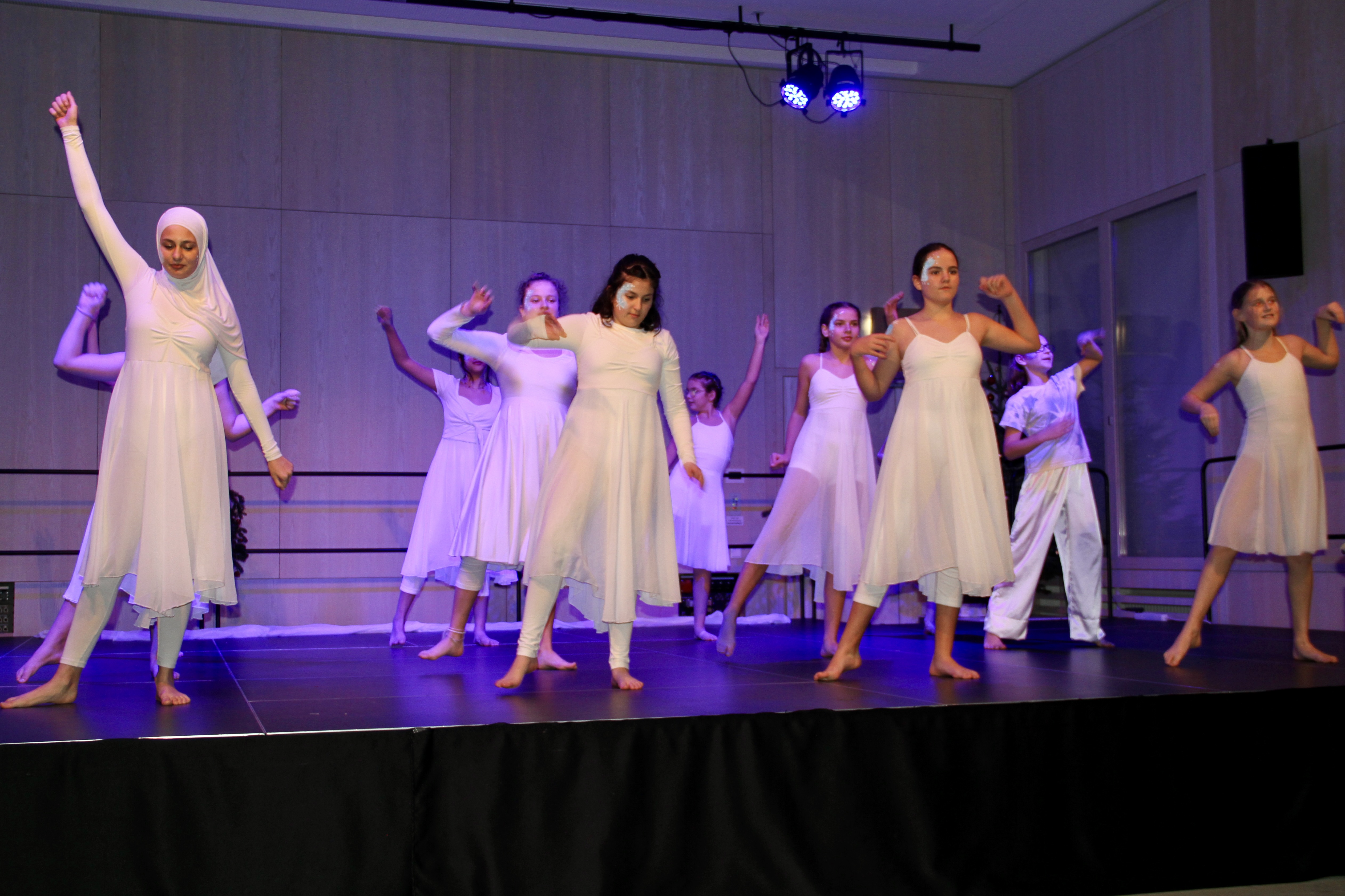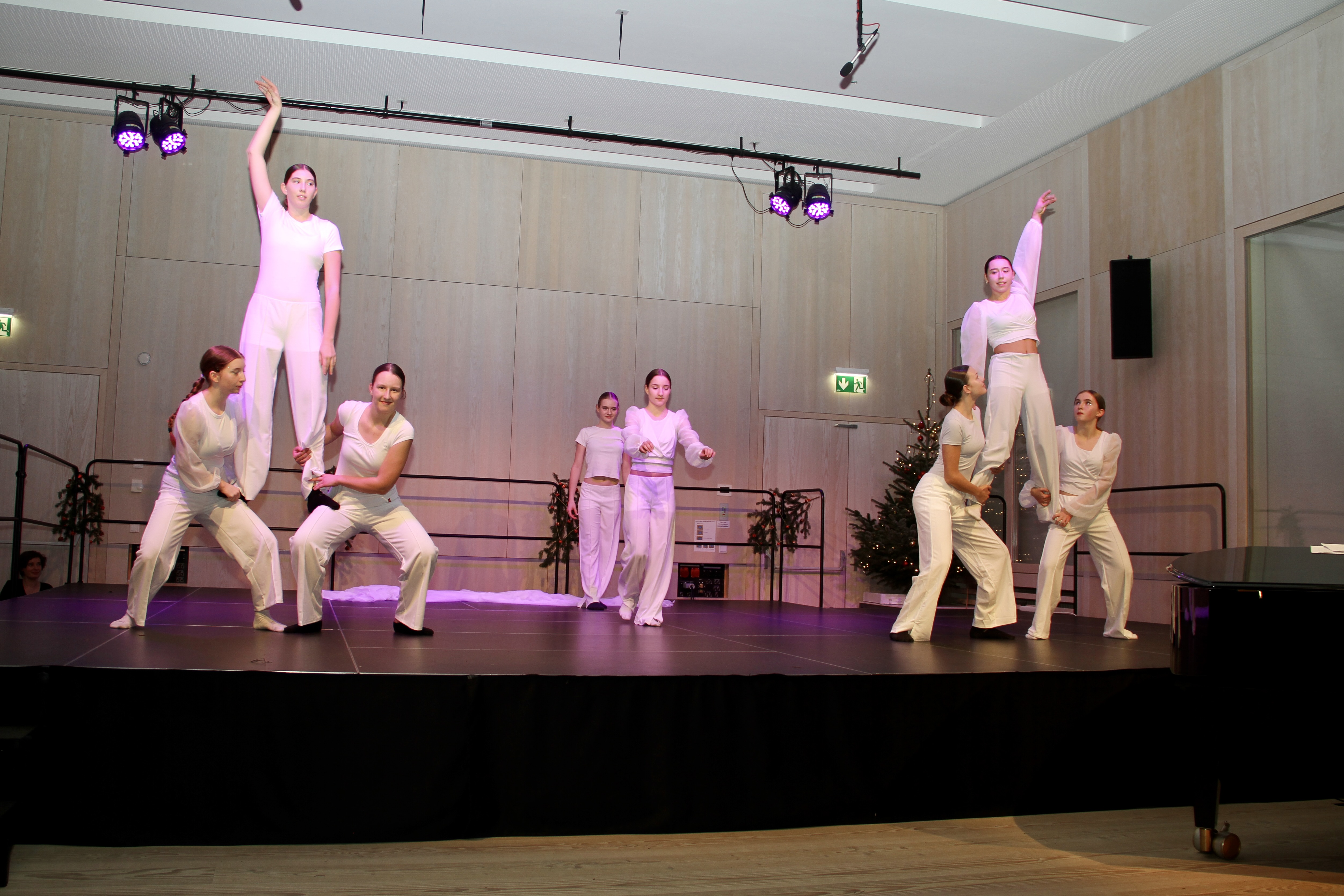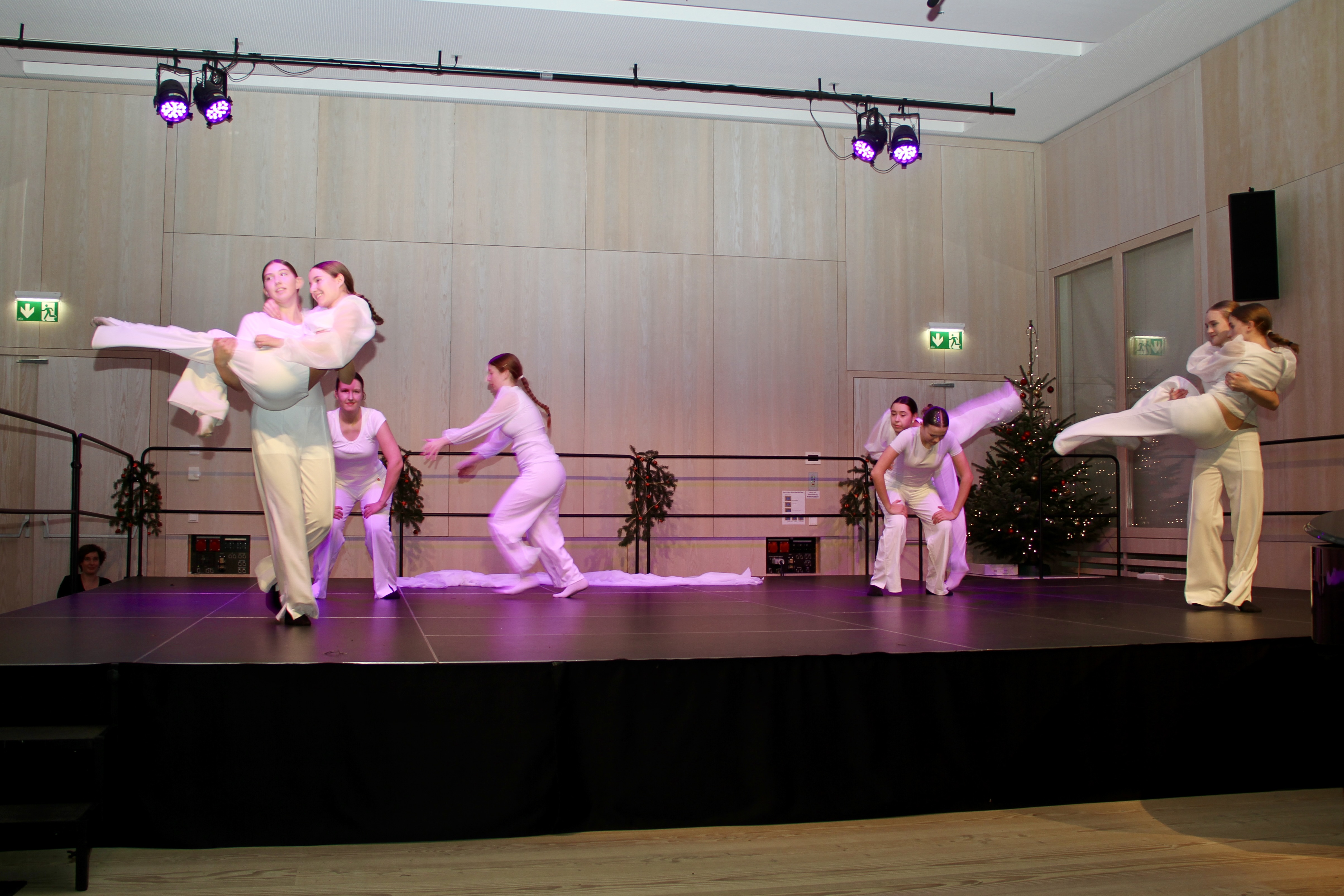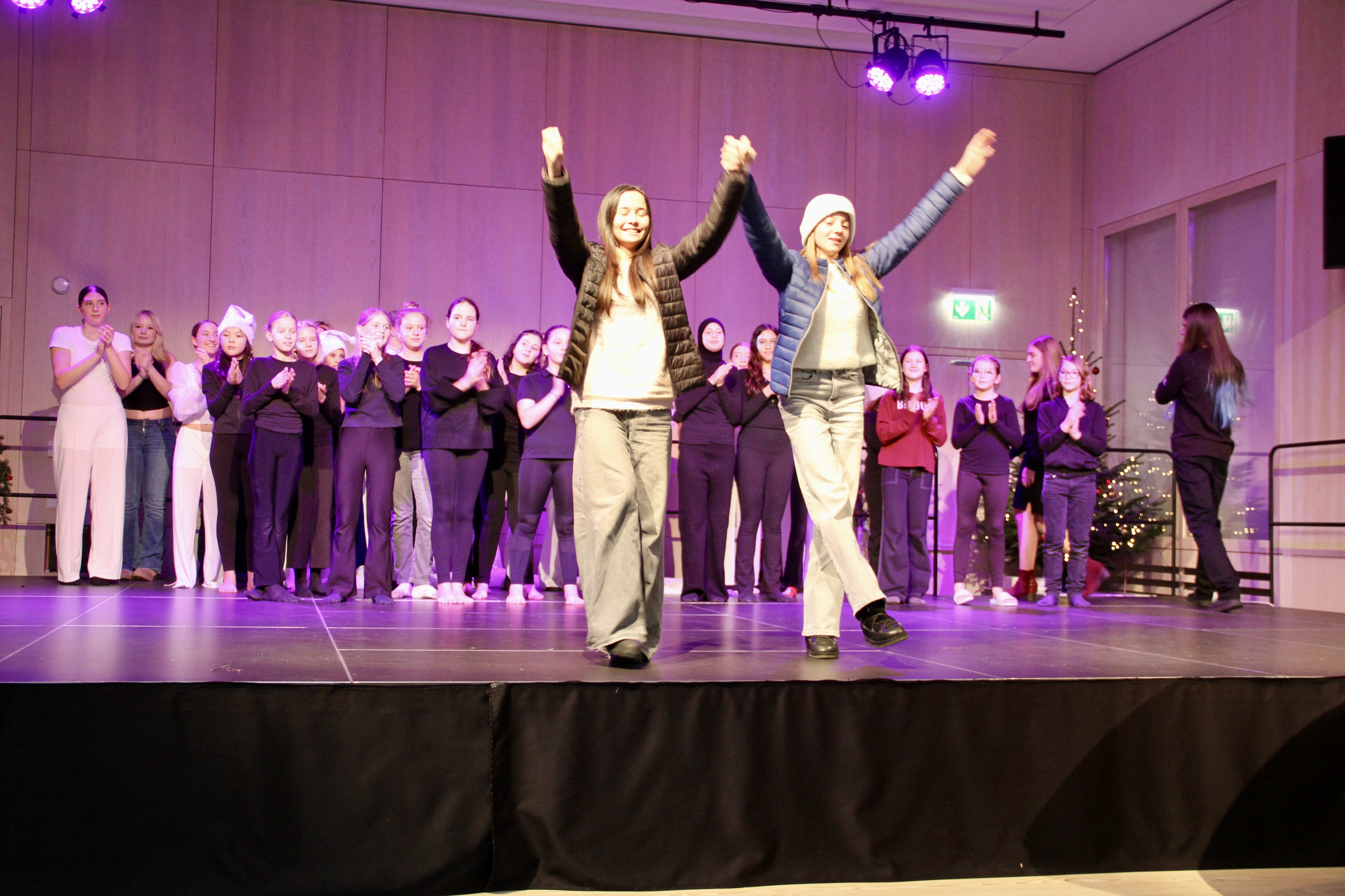 27 Tänzerinnen und ein Tänzer erzählten mit hinreißenden Tanzdarbietungen das Wintermärchen von zwei Kindern, die vor Weihnachten sehnsüchtig auf die ersten Schneeflocken warten. Während sie schlafen, beginnt es zu schneien. Als sie die weiße Pracht erblicken, können sie es nicht erwarten, hinauszugehen und einen Schneemann zu bauen.
