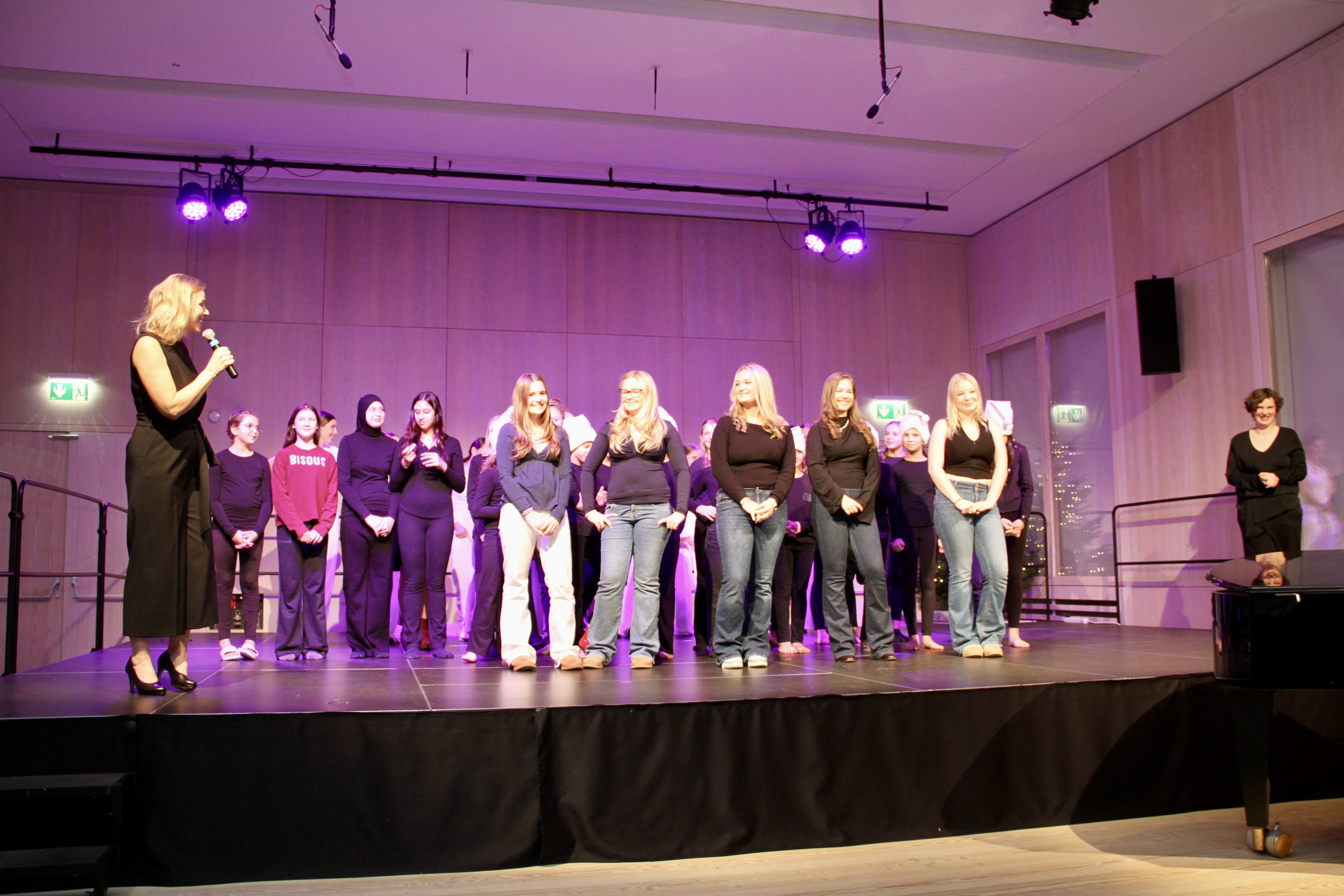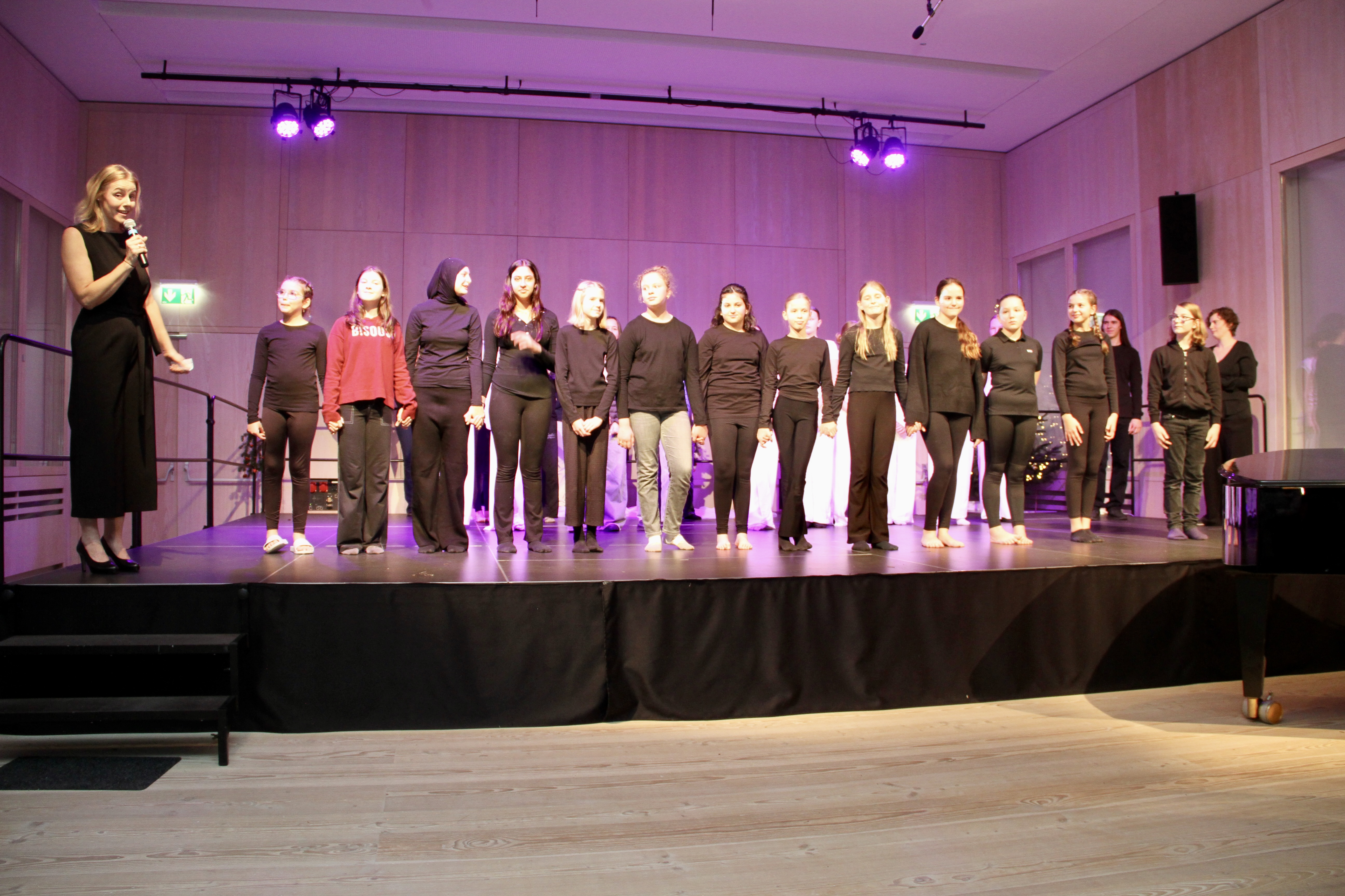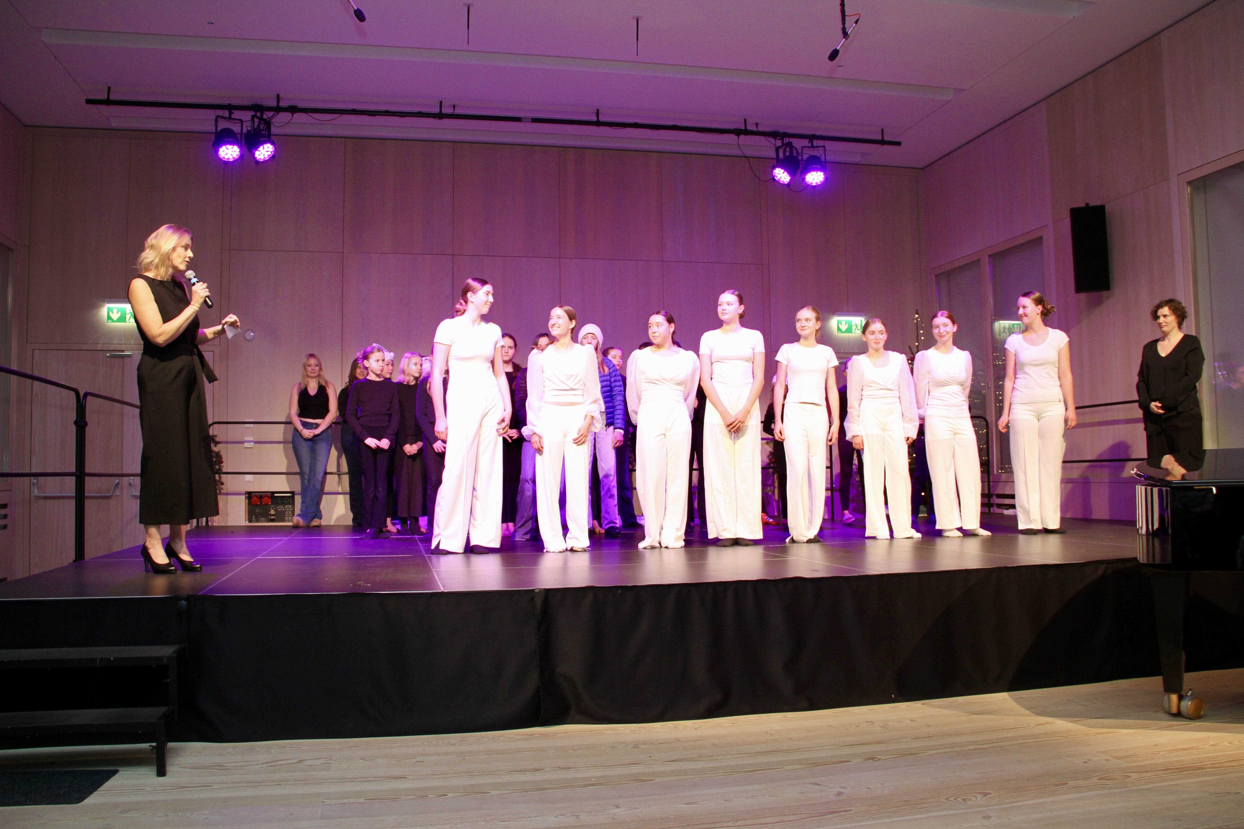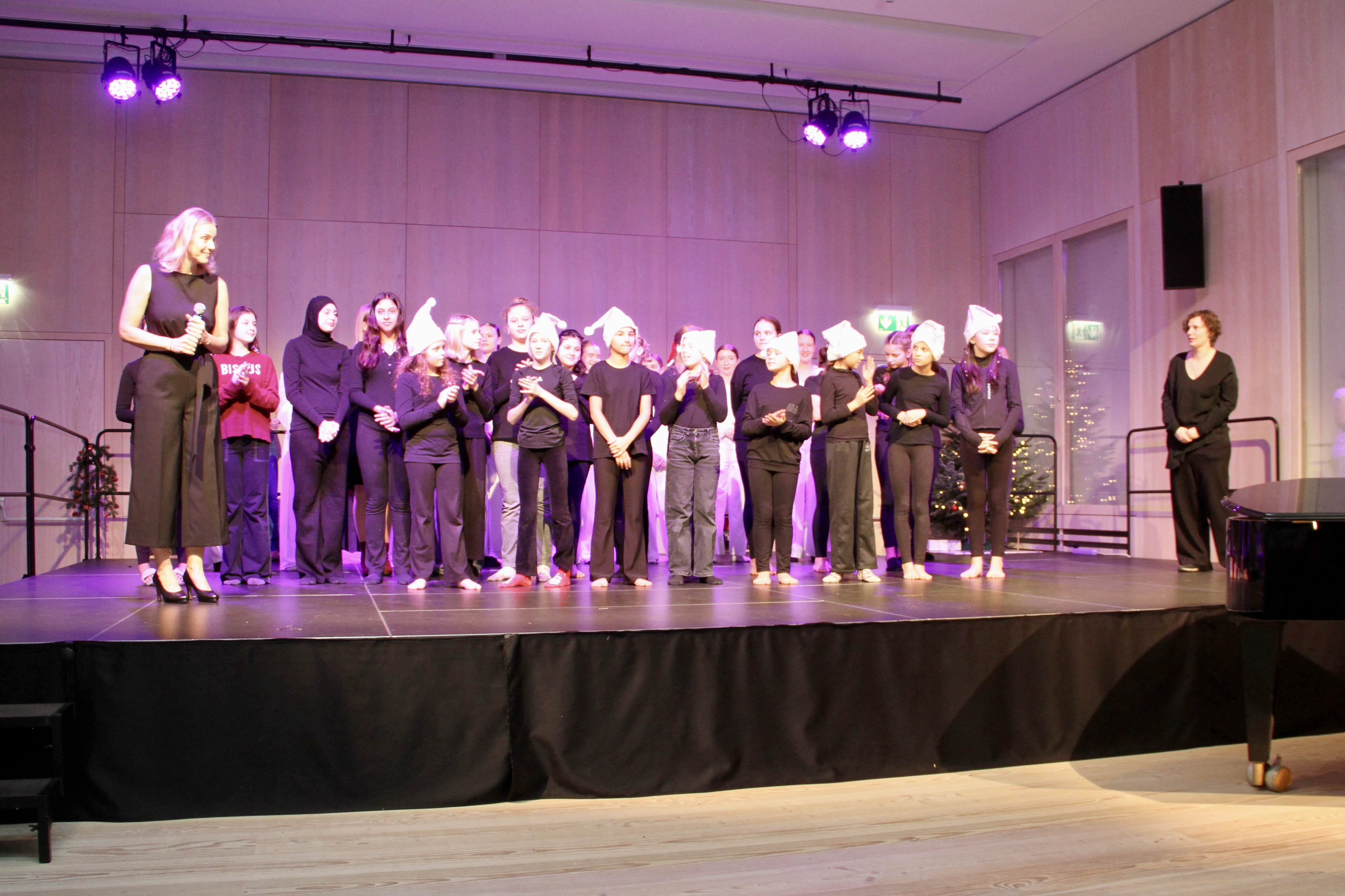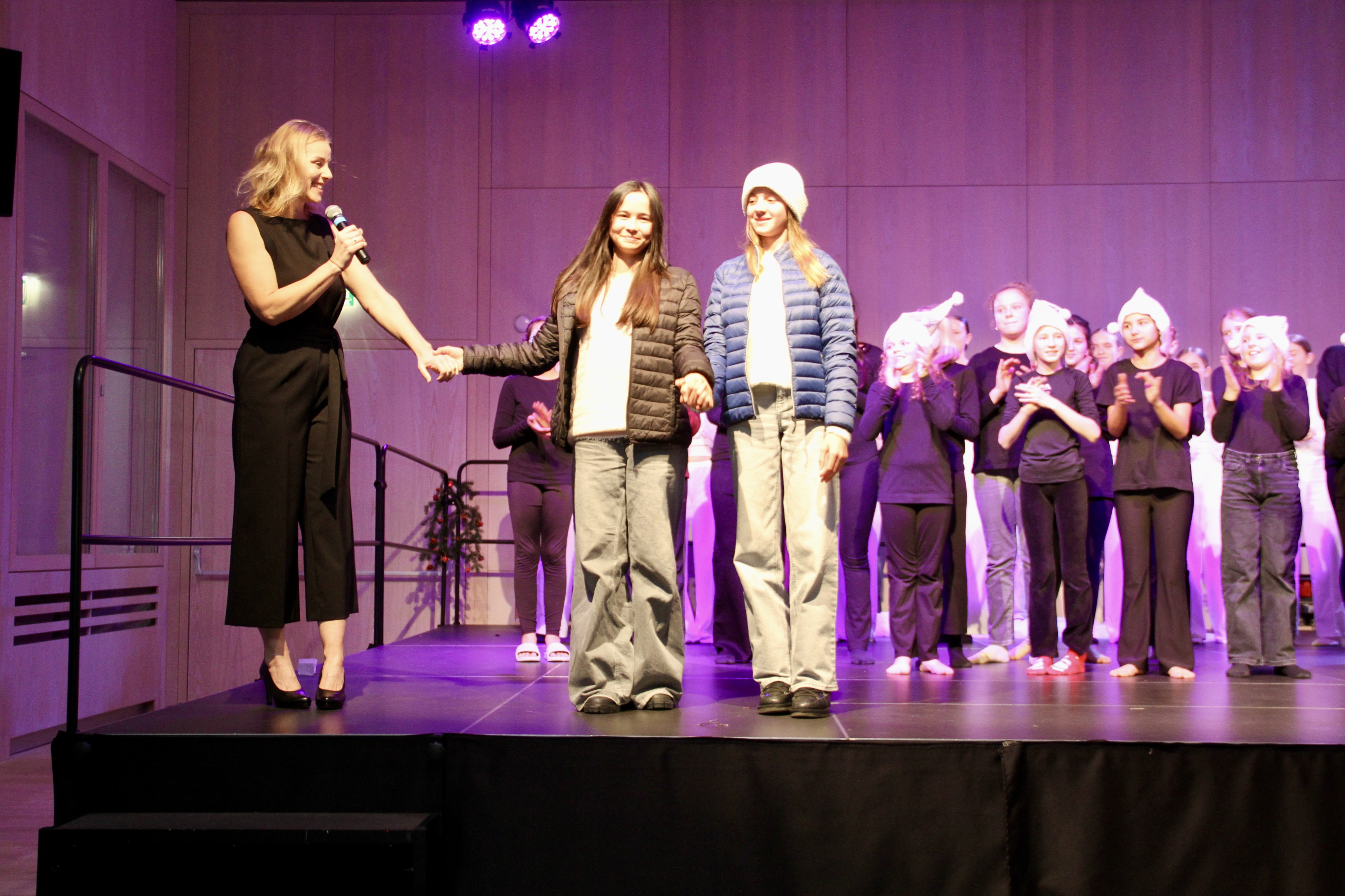 27 Tänzerinnen und ein Tänzer erzählten mit hinreißenden Tanzdarbietungen das Wintermärchen von zwei Kindern, die vor Weihnachten sehnsüchtig auf die ersten Schneeflocken warten. Während sie schlafen, beginnt es zu schneien. Als sie die weiße Pracht erblicken, können sie es nicht erwarten, hinauszugehen und einen Schneemann zu bauen.