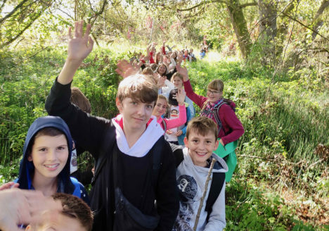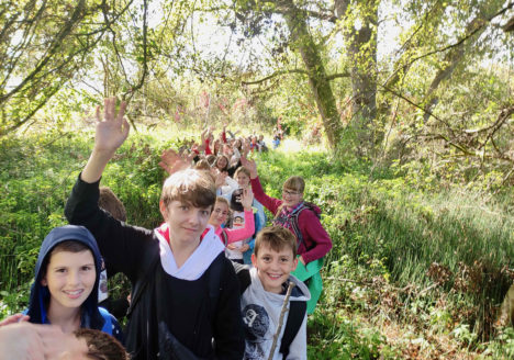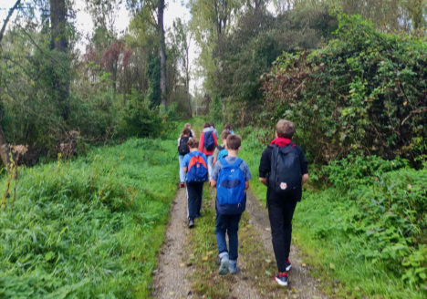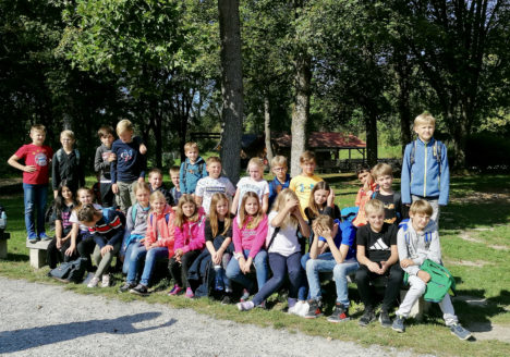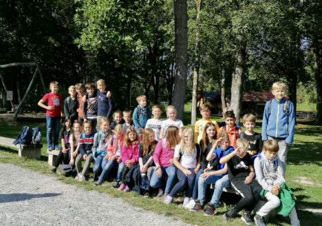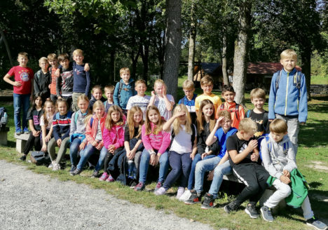 Die beiden Klassen wanderten über den Motorikpark zum Waldsee.