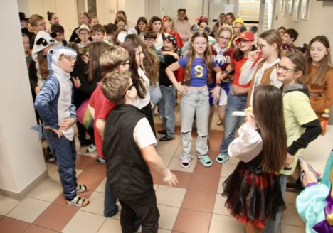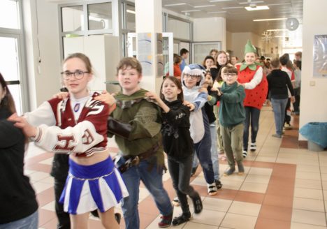 Viele Schüler/innen und einige Lehrer/innen kamen maskiert und verkleidet in die Schule.